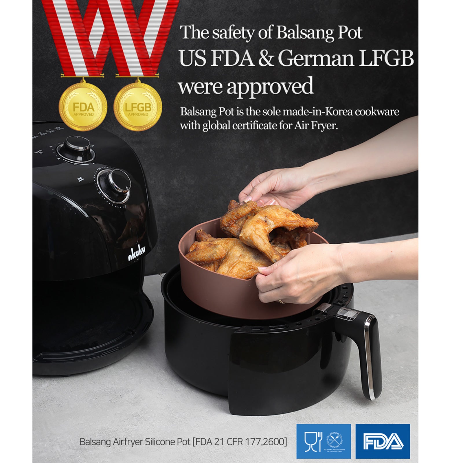 The team in Korea designed this useful silicone pot for air fryers to keep the basket clean.