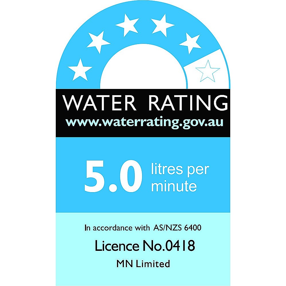 Great looks aren't all you'll receive with your purchase. This mixer comes with Australian Watermark Certification, which identifies quality plumbing products which comply with AS/NZS 3718:2005. And that's not all. This product is WELS-rated at 5 stars for water efficiency with a rating of 5 Litres per minute. This is eco-friendly — plus you'll save money on your water bill.