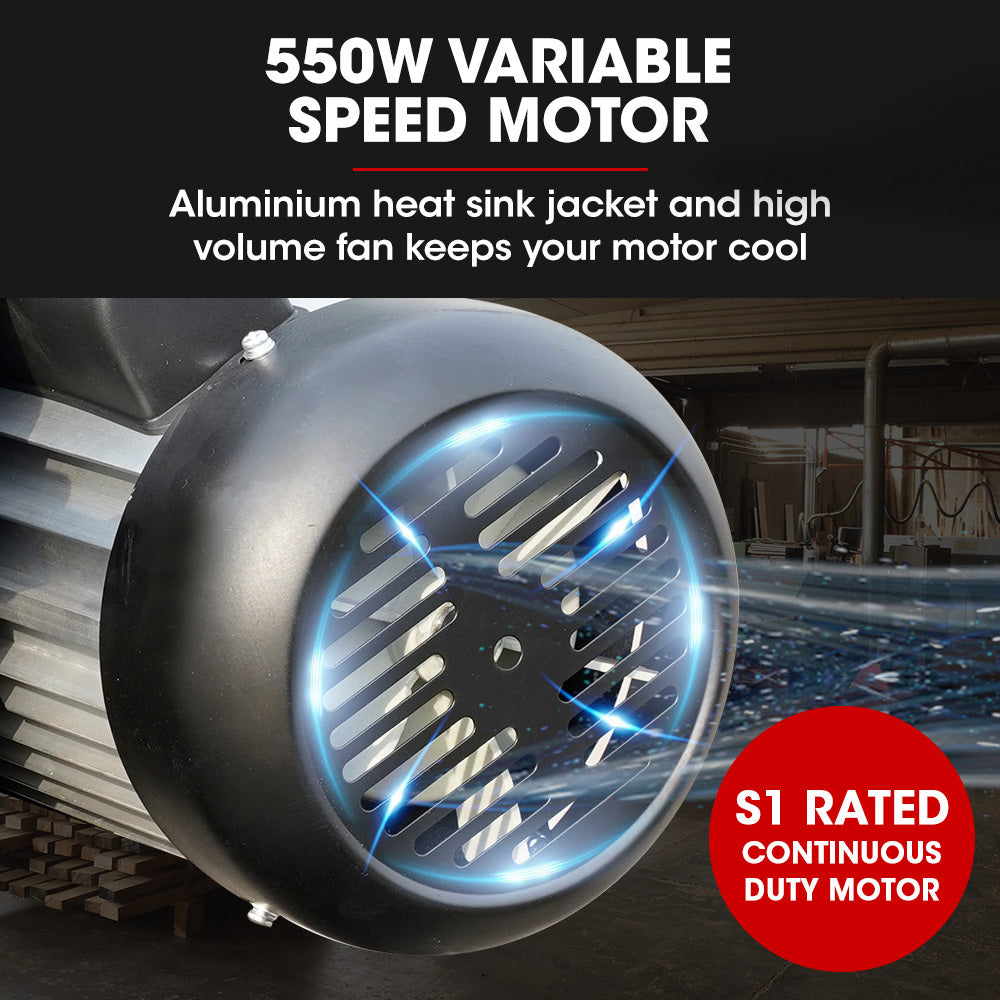 Experience the ultimate woodturning experience with this top-of-the-line BM-LPL6 wood lathe. The powerful 550W motor is a direct drive and boasts the highest rating of ‘S1’ for continuous duty. It provides plenty of power for woodturners of all skill levels. Analogue speed control allows you to adjust anywhere between 680-2500 RPM to get the best possible results for working any type of wood, without needing any pulley changes!