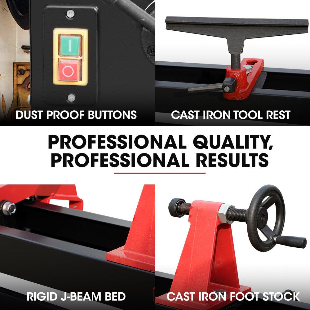 Introducing the Baumr-AG BM-LPL6 Free-standing Heavy-duty Wood Lathe. This 550 watt Lathe is a precision-engineered machine built for durability and reliability.
