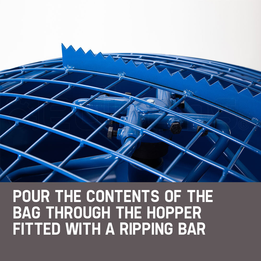 The high-torque 240v 1500-watt motor is powerful and dependable, and designed to meet the demands of regular starting under load. The protective hopper grate has an integrated bag splitter bar and for safety and convenience, the high torque motor automatically stops when the grate is opened.