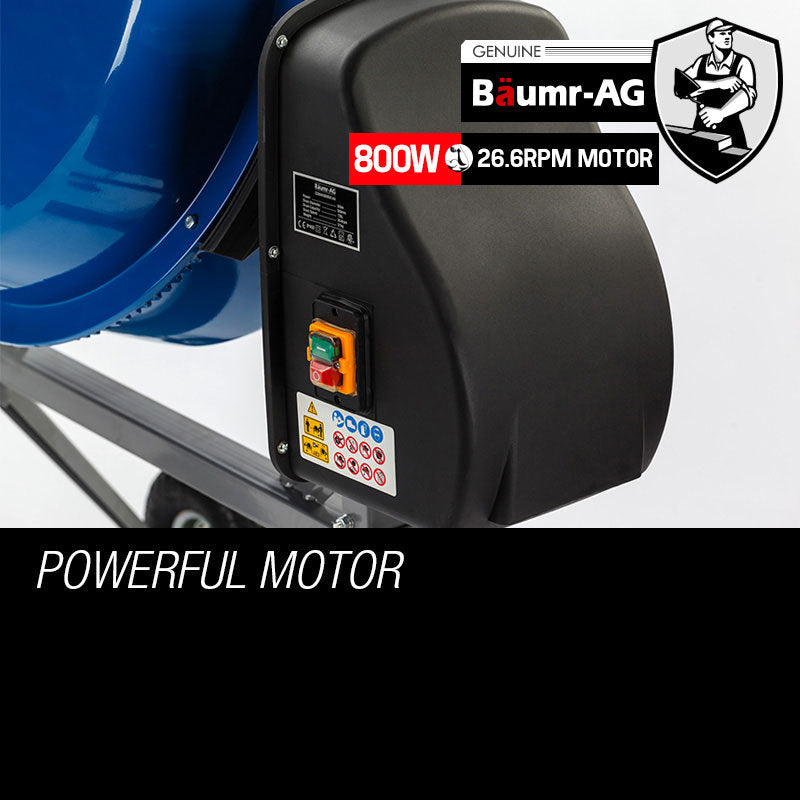 The Baumr-AG 135L mixer is perfect for concrete, mortar, or render. Not only will the easy-load design save your back, the dual fast-mix blades ensure the Baumr-AG 135L will produce a consistent, stable mix every load. Save time not having to wait for an over-wet mix to set or the labourious task of potentially having to redo a job due to inconsistencies of a poorly mixed through batch of cement.