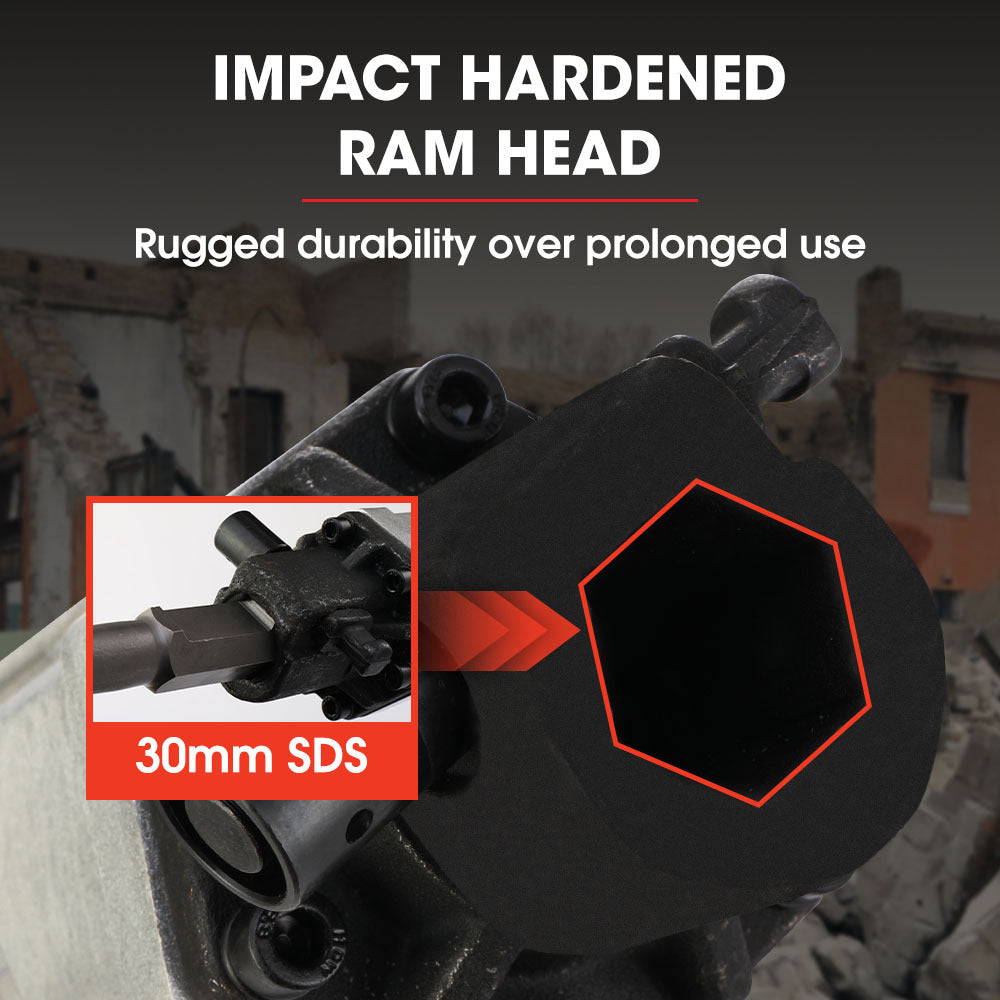 At 1500 BPM it has 55J of energy transfer at impact. Ensuring that no task is too much for this tough compact powerhouse. The case hardened steel body and Baumr-AG’s exclusive Air-Flex anti-vibration handles protect you from excess vibration. It has a 30mm SDS bit connection that accepts most standard bits.