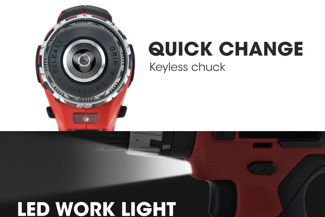 The DR3's no fuss design is extremely portable lightweight design and low-maintenance with no tangling cords. The super-durable yet lightweight body, thermoplastic rubber over moulded handle, 18 torque settings, keyless chuck, belt clip and LED light all make your life easy!