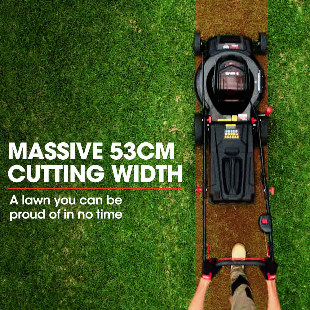 Baumr-AG continues to deliver innovative gardening tools with the powerful 22” 56V 850CX Net Zero lawn mower. With no maintenance hassle, no fumes, and no fuelling it’s easy to maintain a lawn that you’ll be proud of. And, with a steel deck, an impressive 530mm cutting width and mulching function, this is certainly not your average battery powered mower!
