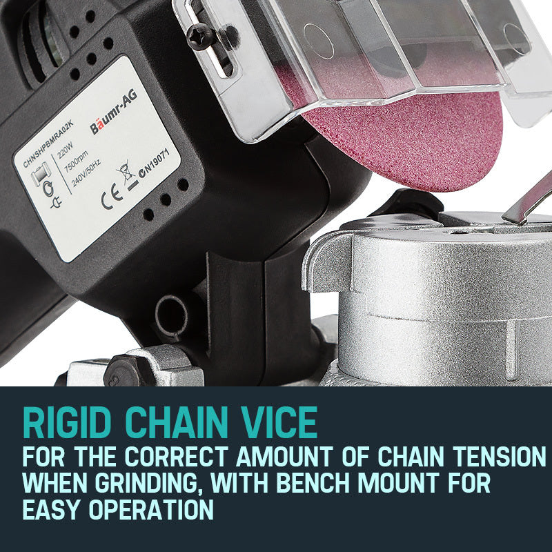 Why pay someone else to sharpen your chainsaw when you can do it yourself? With a light, rigid CAD design the Baumr-AG Rigid Pro-Series 320W Chain Sharpener keeps any sized chainsaw pitch razor sharp. Its balanced 220W solid copper engine delivers constant blade speed with no hot spots while its rigid chain vice and exclusive STEP-LOCK technology ensure precision cutting and clean grinds every time. You've got to have the ultimate DIY sharpening machine.