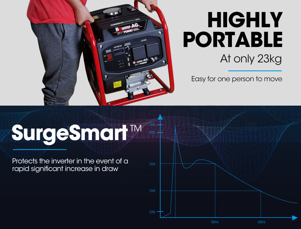You can relax and just get on with things with the GV7000 as it takes care of any instances of overload or low oil, while SurgeSmartTM will protect the inverter in the event of a sudden significant increase in draw.