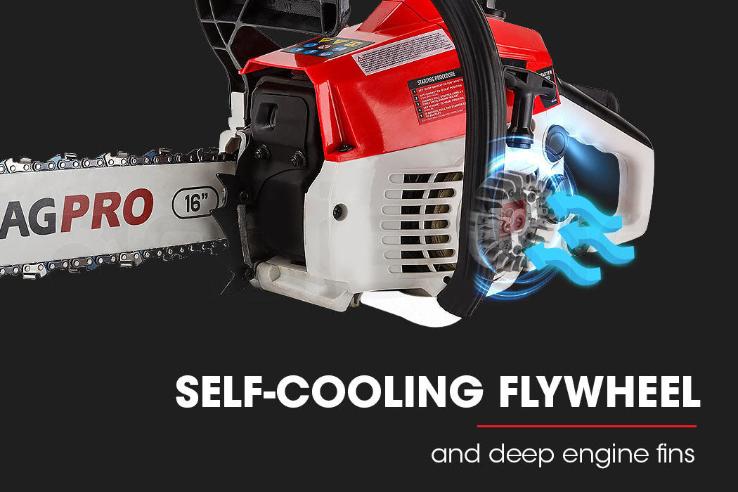 The Baumr-AG Pro 16\' Chainsaw is perfect for trady or home handy man who likes to work hard and pack light. With a 3.2hp 38cc engine and direct air injection carburettor this mighty mini packs a serious punch and it comes loaded with great features, like a quick chain tensioner, fast primer, auto chain brake and correctly sized 16\' bar for fast cutting and superior performance.