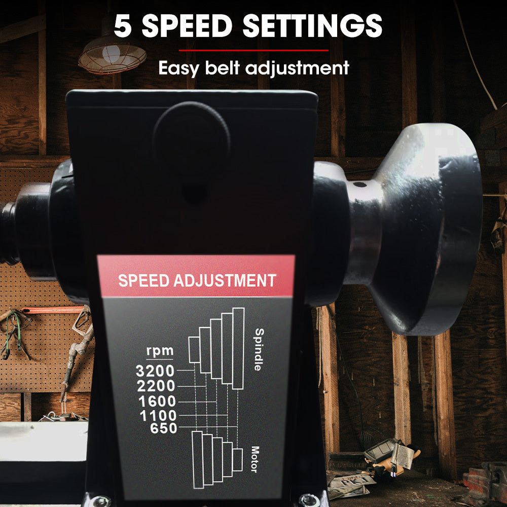 Experience the ultimate woodturning experience with this exceptional wood lathe. The powerful 400W S1 motor is belt driven and has 5 speeds. It has plenty of power for woodturners of all skill levels. With an easy-to-change belt, you can turn at 650/1100/1600/2200/3200 RPM giving you the best possible results for working any type of wood.