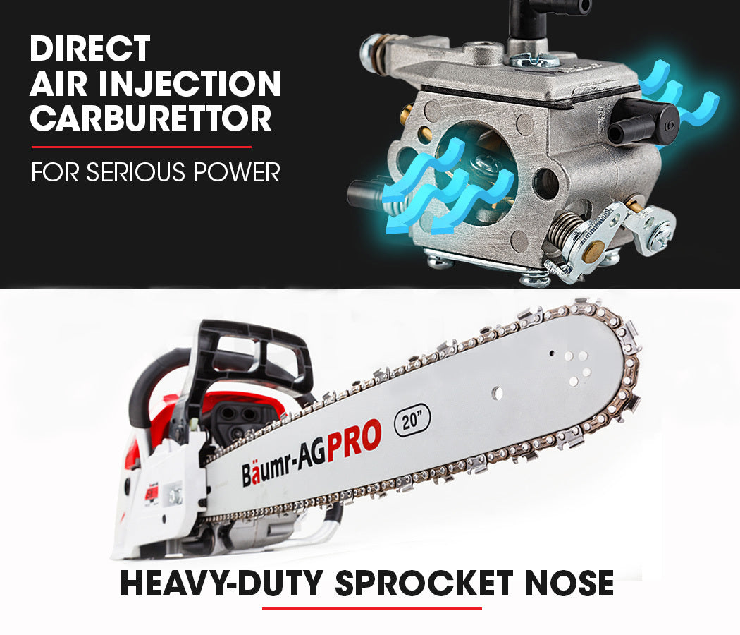 Make no mistake, this fast revving, perfectly balanced unit packs some serious punch, with Baumr-AG's premium range patented air injection carburettor delivering enough power to take on a whole variety of different jobs - from tree work, preparing firewood and sectioning those small to medium branches, to clearing overhang and removing bushfire hazards.
