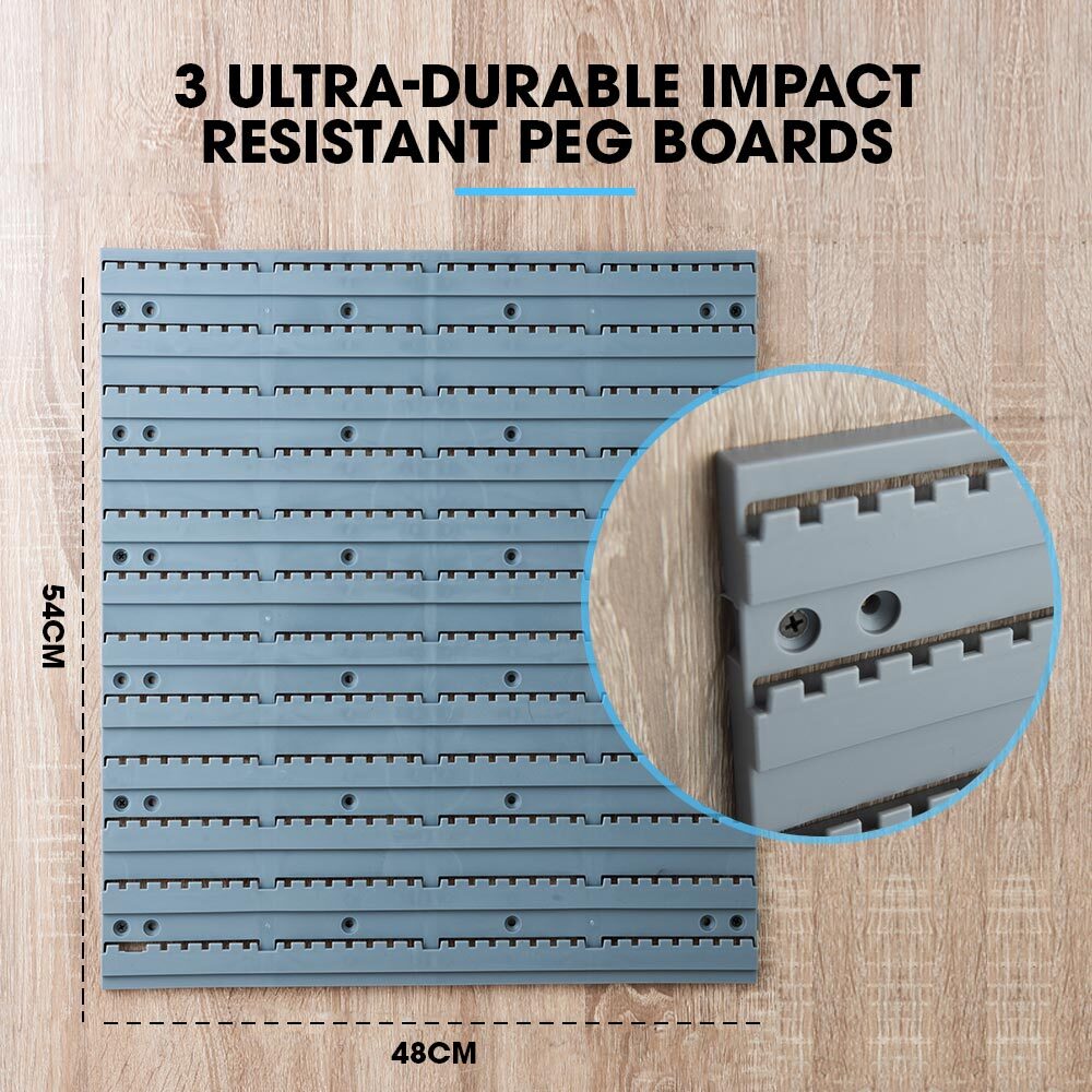 Keep your tools in one place and your workspace neat and tidy with the Baumr-AG Wall Mount Parts Bin Rack. The modular design makes it easy to organise and store loose parts and tools in your home garage or workshop. It comes complete with 52 tubs and 17 tool mounting options that can be positioned across 3 durable impact resistant pegboards.
