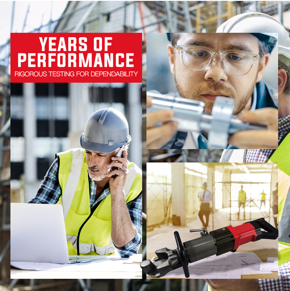 The demanding nature of Rebar cutting means it's vital that quality tools are used to do the job safely and efficiently. Baumr-AG's range of reo bar bending and cutting equipment certainly fits the bill. The commercial-grade Baumr-AG RB16B Hydraulic Rebar Bender is a must have for any builder with its tough body with a very portable weight of 14kg. The front and rear handle configuration allows it to be maneuvered into confined spaces, and the front handle is designed to conveniently suit either right or left-handed operation.