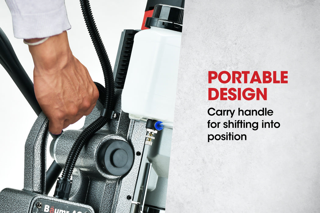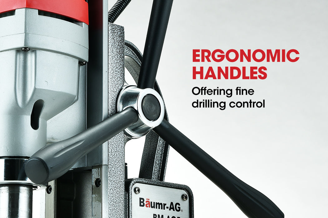 With an integrated handle and electro-magnetic base you can easily shift it to where you need to work. At the flick of a switch the base engages an incredible 13500 newtons of adhesive force! With the Baumr-AG BM-AC5 Annular drill you can look forward to fast set-ups, high productivity and with clean, safe results.