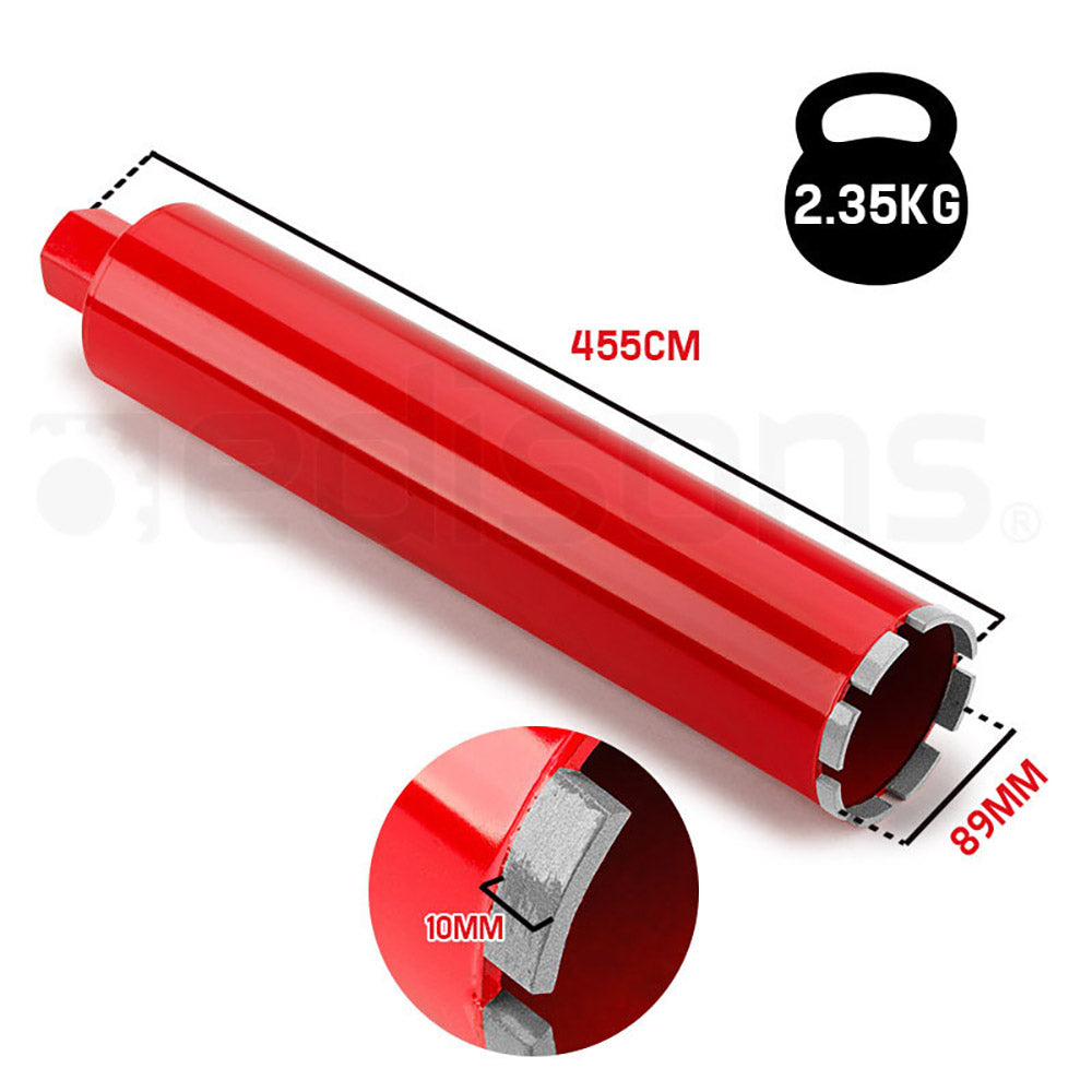 Hit the ground spinning with the NEW Baumr-AG 89mm Diamond Core Drill Bit. This heavy-duty drill bit is suitable for penetrating super tough materials, including Concrete, Poroton, Cellular Concrete, Ytong, Marble, Bricks, Tiles, Granite, Stoneware and various other Masonry and Concrete surfaces. It’s built with commercial-grade steel to last the long haul, and its diamond cutting teeth will chew through incredibly solid surfaces with great ease and precision.