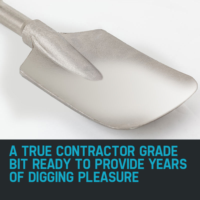 This extra-wide 135mm square-tip clay spade turns your jackhammer into a powered mega spade! This type of spade is best suited for hard soil that bends ordinary shovels - time to get your own ultimate bit! The full 135mm width and super thick spade base means you only ever need to buy one of these. Resharpen time after time with plenty of meat. A true contractor grade bit ready to provide years of digging pleasure!