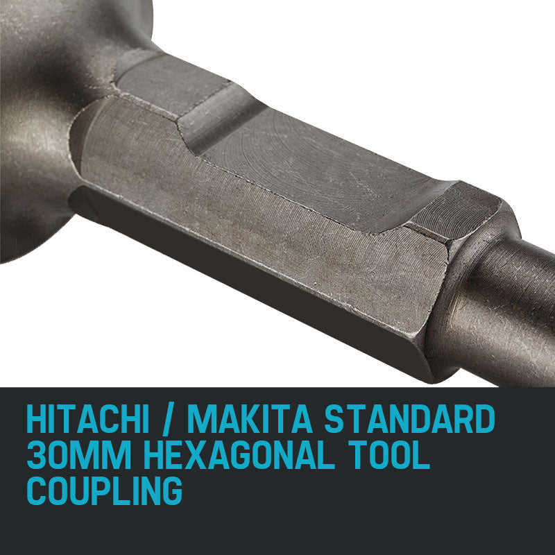 This 50mm Stake/ Pin Driving Chisel transforms your jackhammer into a foundation and underpinning king! Got formwork, ground stabilisation or retaining walls to build? This industry standard 50mm Stake Driver can be used to firmly drive ground pins super quick - meaning more in your back pocket! The deep 40mm recessed head ensures plenty of material contact, making even horizontal work a breeze. A true contractor grade bit ready to provide years of destruction!