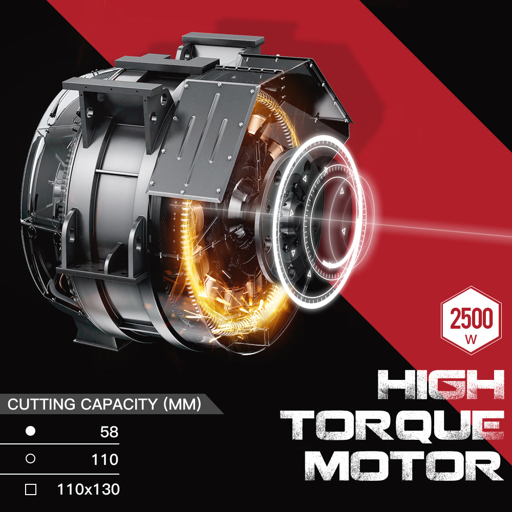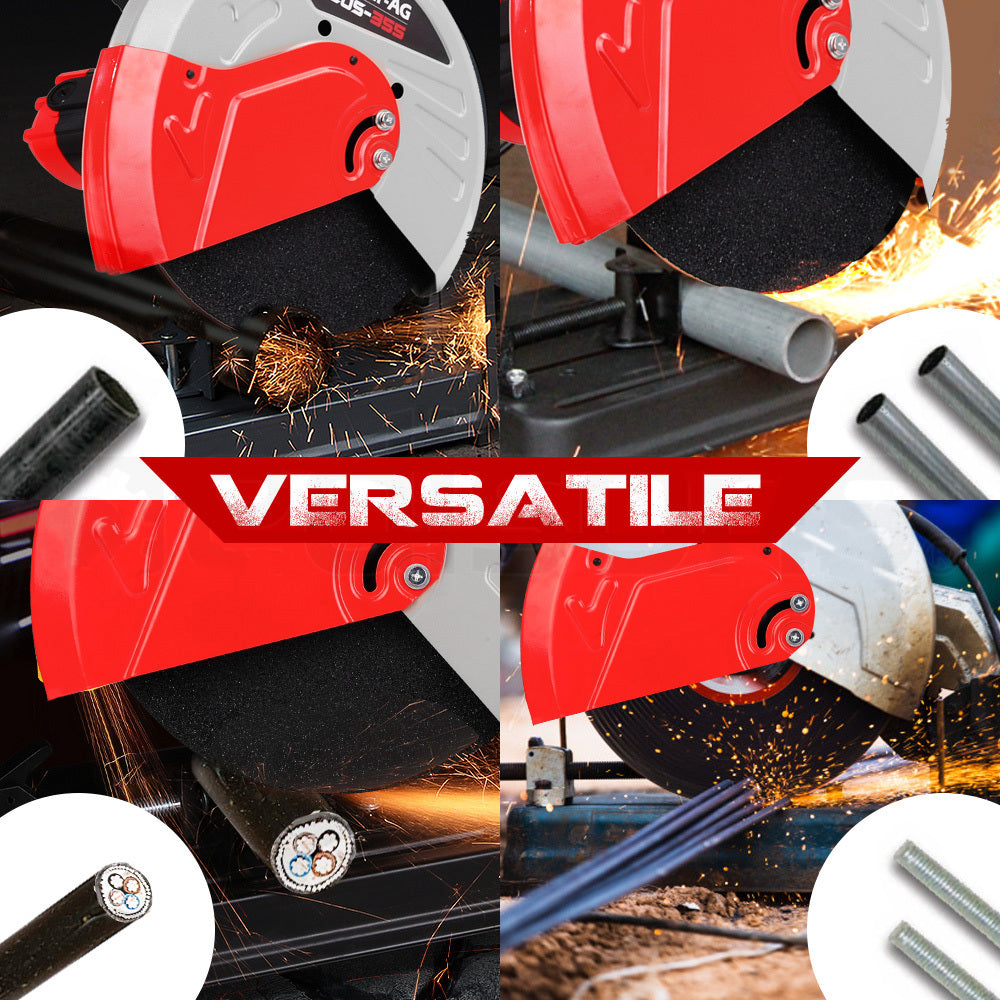 Powered by an exceptional high-torque 2,500W motor that drives its thick 355mm cutting disc. Boasting a massive 110 x 130 mm cutting capacity, this beast goes through metal with ease. The COS-355 is mounted on a solid pressed steel base and is equipped with an adjustable quick set and release vice that can be adjusted for up to a 45° mitre cut, giving it unrivalled stability and ensures a clean, precise cut each time. Its large, retractable spark guard gives you peace of mind and assures you of a safe and secure cutting experience.