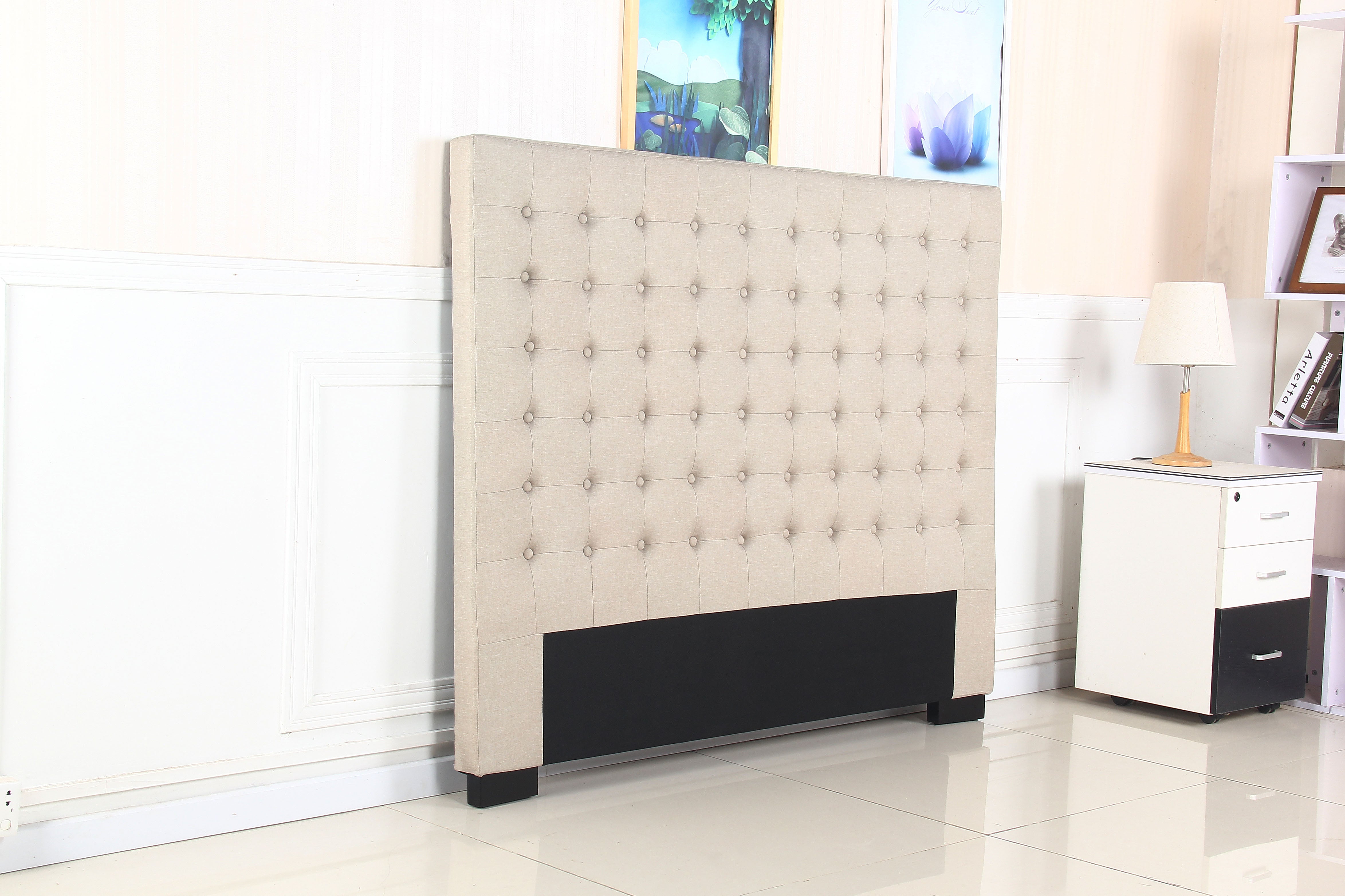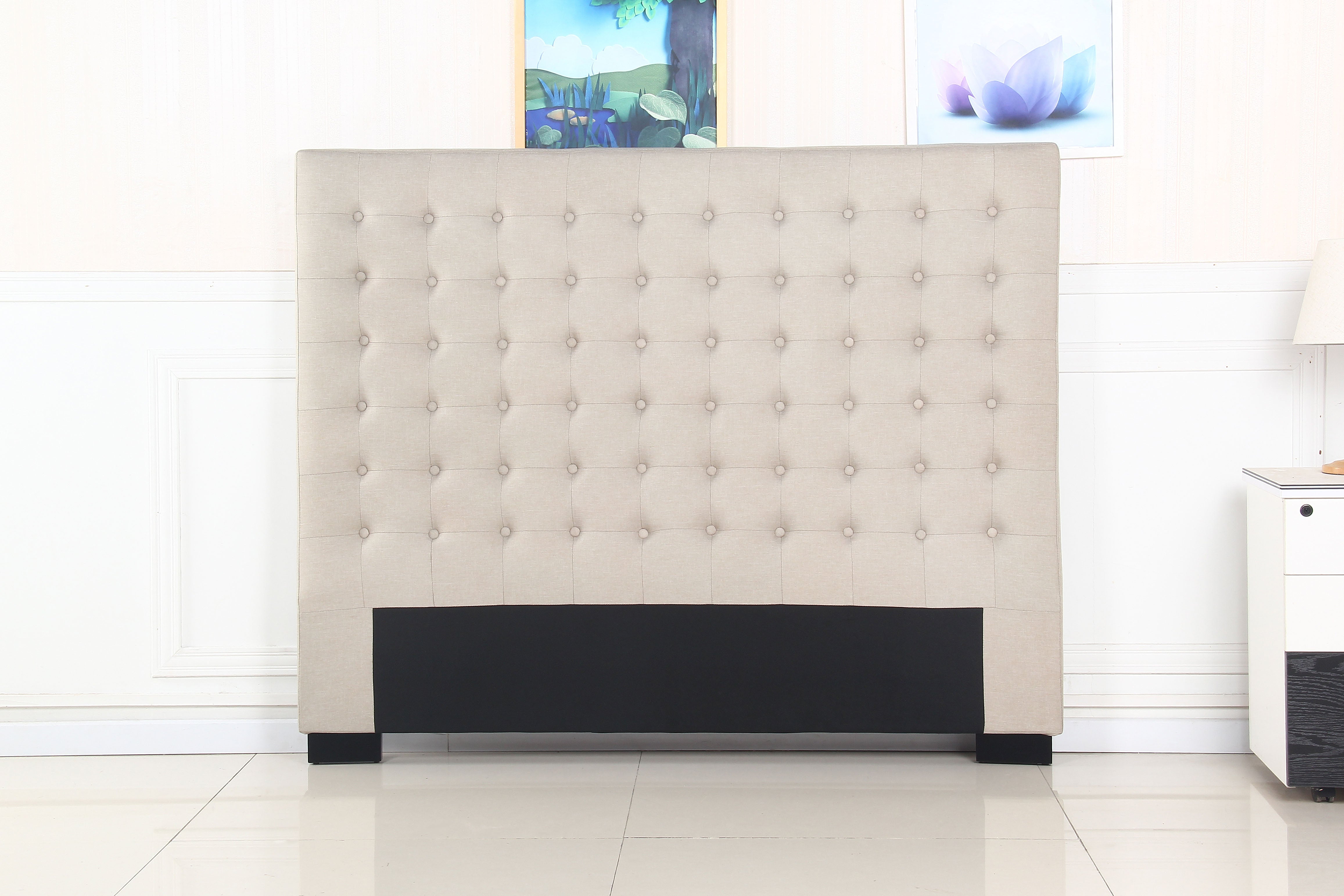 Bed Head Queen Beige Headboard Upholstery Fabric Tufted Buttons