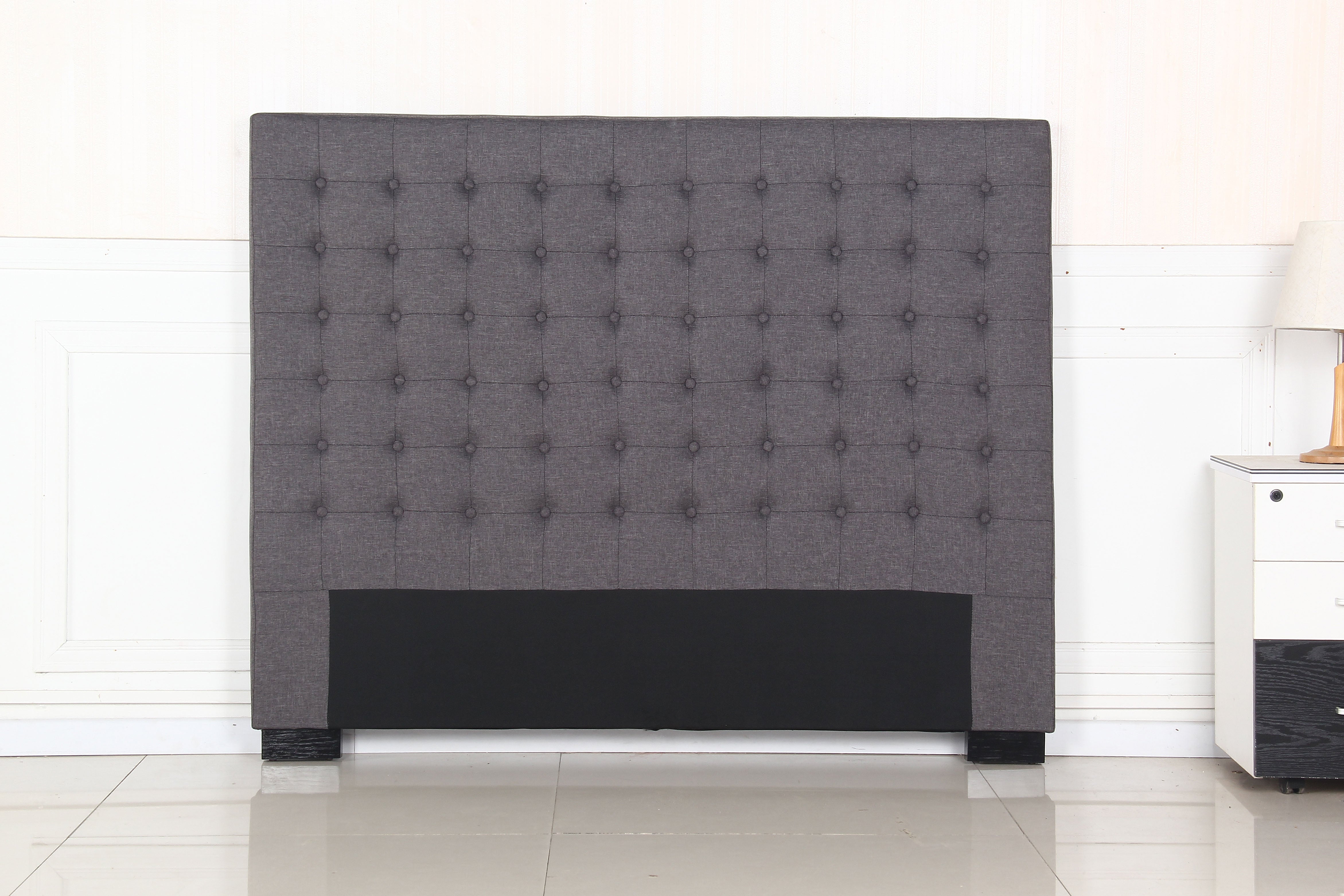 The headboard is finely decorated with seamed grid pattern and fabric covered buttons on high padded surface. It provides a backrest for the persons who want to sit up and read. Accented by numerous buttons in a tufted fashion, this headboard would evoke a sense of grace and elegance.