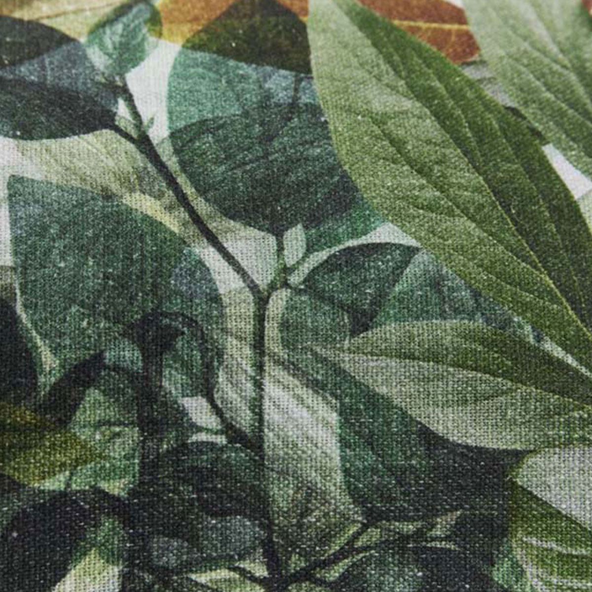 Give your interior a botanical twist with the decorative Olinda Blue Green Oblong Filled Cushion 30cm x 50cm by Bedding House. This oblong, decorative cushion features a digital print of different leaves on the front on a fresh blue background. The back of the cushion has a solid dark green colour. Decorative cushion Olinda is made of 100% slub cotton. The size is 30 x 50 cm. The cushion has a zipper at the bottom and comes with a resilient polyester inner cushion. Nice detail: the pillow has a golden puller at the zipper in the shape of an Amsterdam canal house. The cushion is not suitable for machine washing or tumble drying.