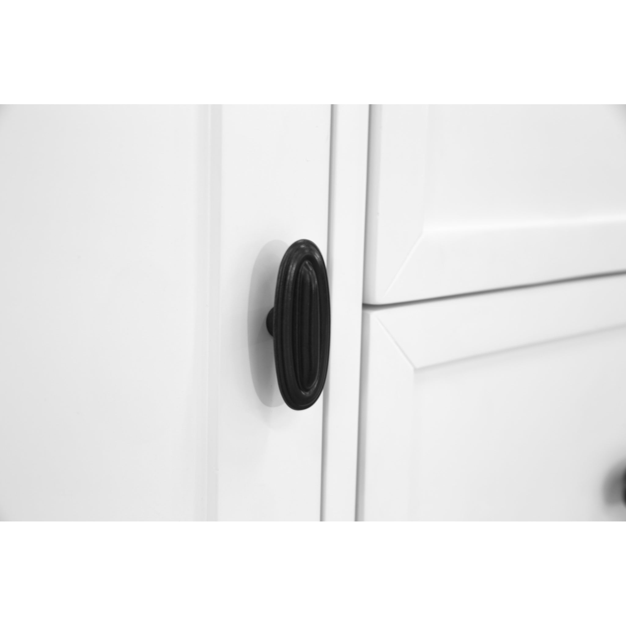 - Beautiful oval-shaped metal handles on drawers and door
