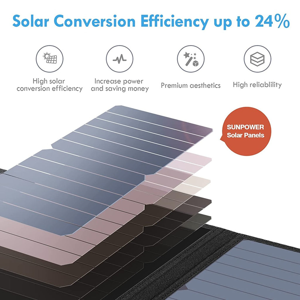 BigBlue Portable 28W SunPower Solar Panel 2 USB Ports with Digital Ammeter