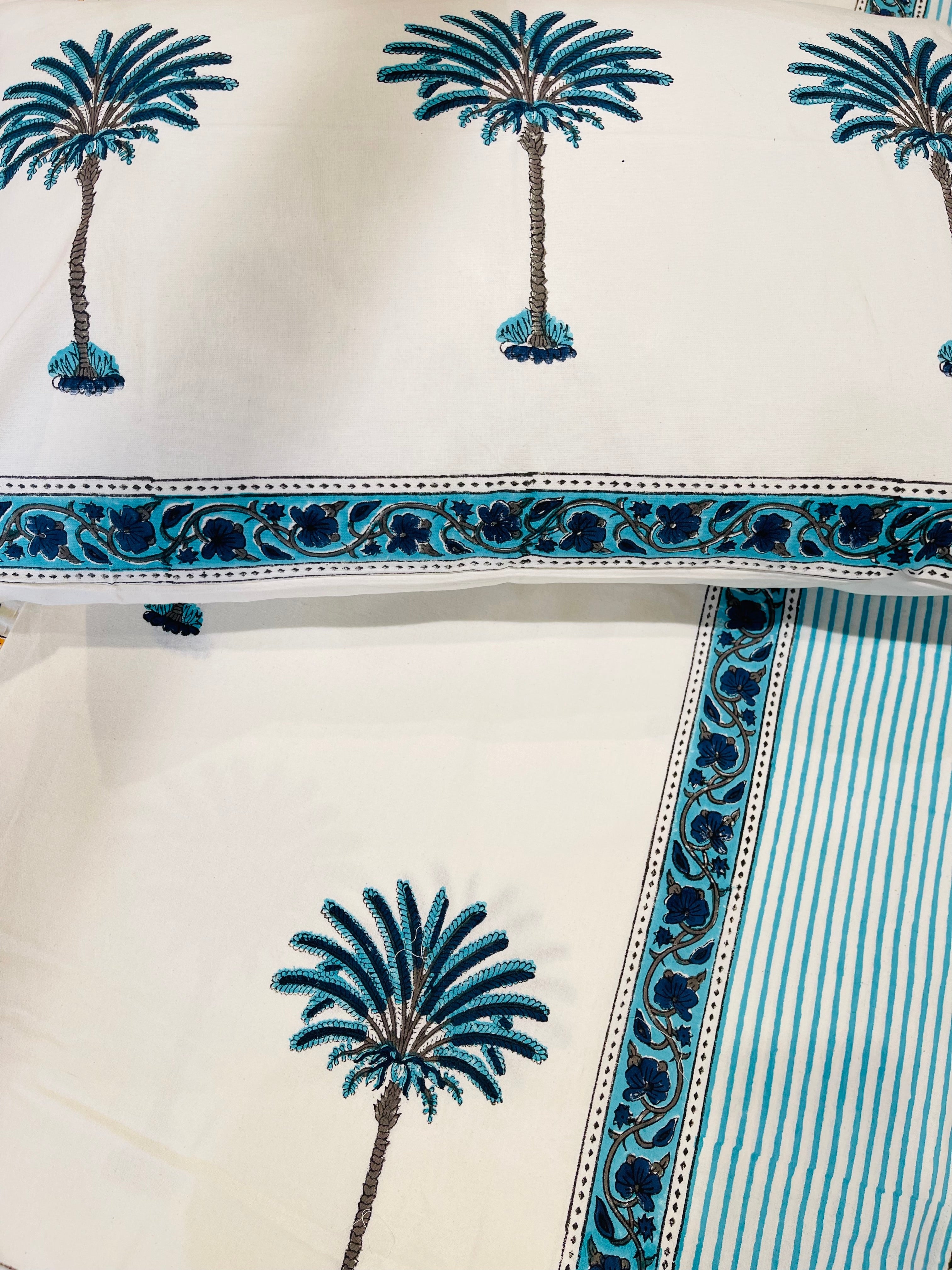 This is a blue palm tree bedsheet which is hand block printed by the local artisans of India. This will... Read more