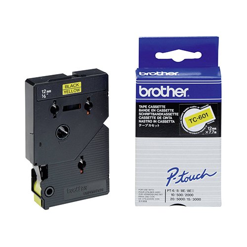 Brother TC-601 12mm x 8m Black on Yellow Label Tape - for use in Brother Printer