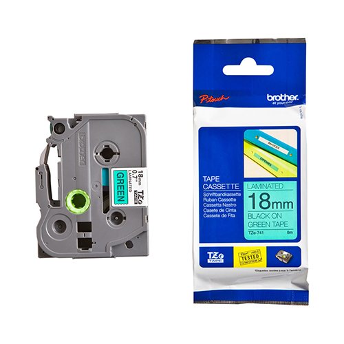 Brother TZe-741 18mm x 8m Black on Green Tape - for use in Brother Printer