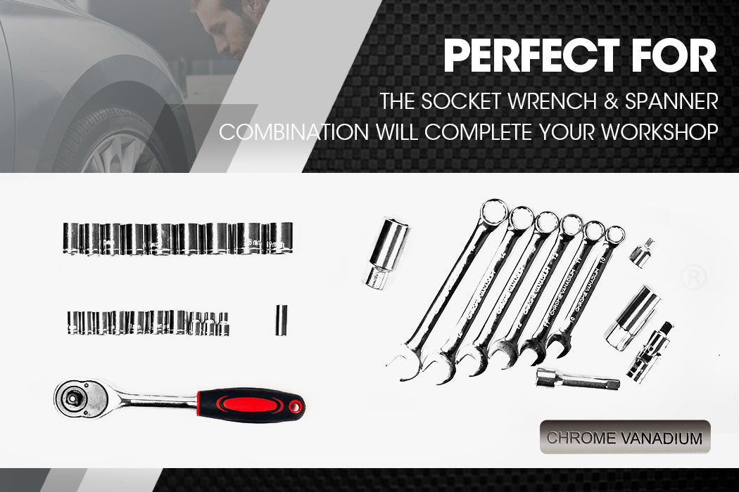 Tools: 9pcs 3/8" sockets: 10,12,13,14,15,16,17,18,19mm