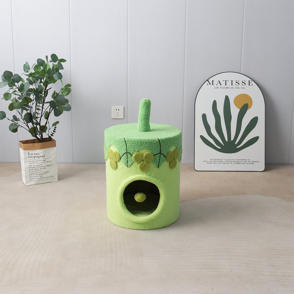 Create a serene sanctuary for your cat with the CATIO Green Grape Cat House. Designed with a round entrance that leads to a private and secure space where your cat can relax and enjoy moments of tranquillity. The hanging green plush ball at the entrance invites playful swatting and batting, keeping your cat entertained and the spacious cylinder shape ensures that your cat has ample room to move and stretch comfortably.