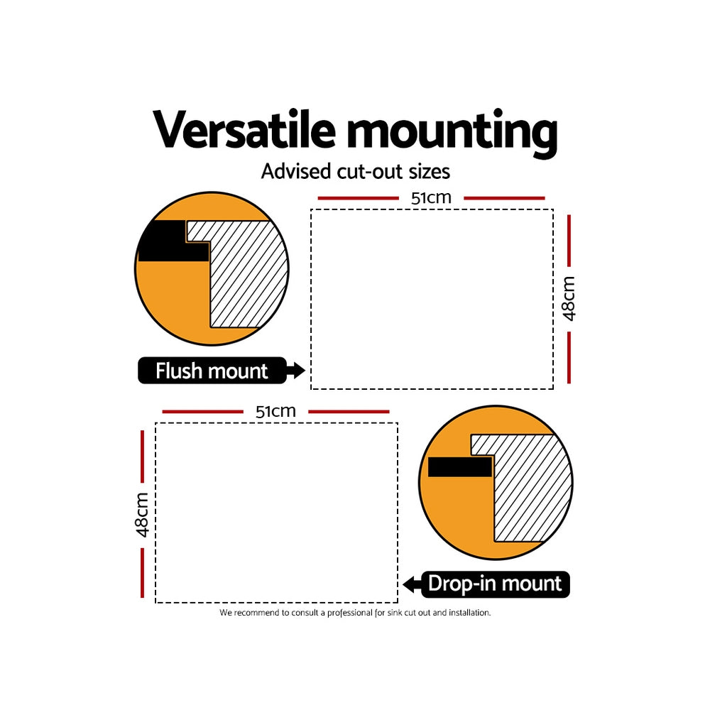 The Cefito Handmade Stainless Steel Sink is built to exacting standards so that you get the very best of quality materials and craftsmanship. It is crafted from heavy-duty food grade 304 stainless steel, unlike others that are made from inferior 201 grade or 304 imitations. Built to be scratch-proof, oil-proof and more importantly, bacteria-free, the silky-smooth satin-coated stainless-steel sink also features an X-flume design for easy drainage, deep and wide bowl for practicality, R10 rounded corners for safety and easy cleaning, eco-friendly anti-condensation paint, and five sound-deadening pads. Suitable for drop-in, flush-mount or under-mount installation, our stainless steel sink should have a definitive place in your uncompromising kitchen.