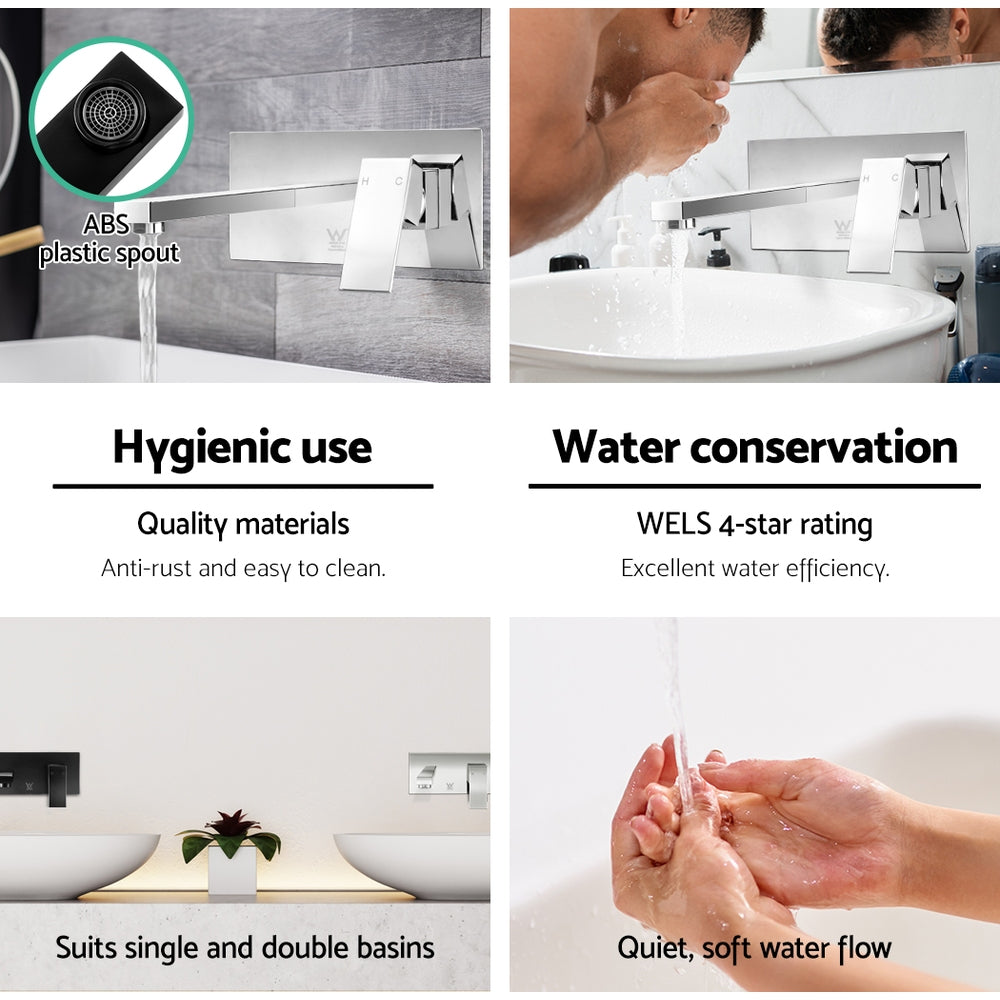 Give your bathroom a sleek makeover with our Cefito Allegra Wall Mixer Tap. Crafted from a high-quality mix of solid brass and ABS plastic with polished chrome finish, our mixer tap is meticulously designed to increase efficiency and enhance flexibility with any washing done in your basin. It also features a 35mm drip-free ceramic cartridge that ensures longlasting performance for absolute durability and reliability. Suitable for both hot and cold water use, the mixer tap is WaterMark-certified and WELS-approved to comply with stringent health and safety standards in plumbing and water supply products as well as current Australian standards. The mixer tap is easy to install with all the necessary parts included and fits pipes sized G1/2″. Together with its 5-year cartridge warranty, our mixer is your best choice for a modern bathroom that stands out in form and function.