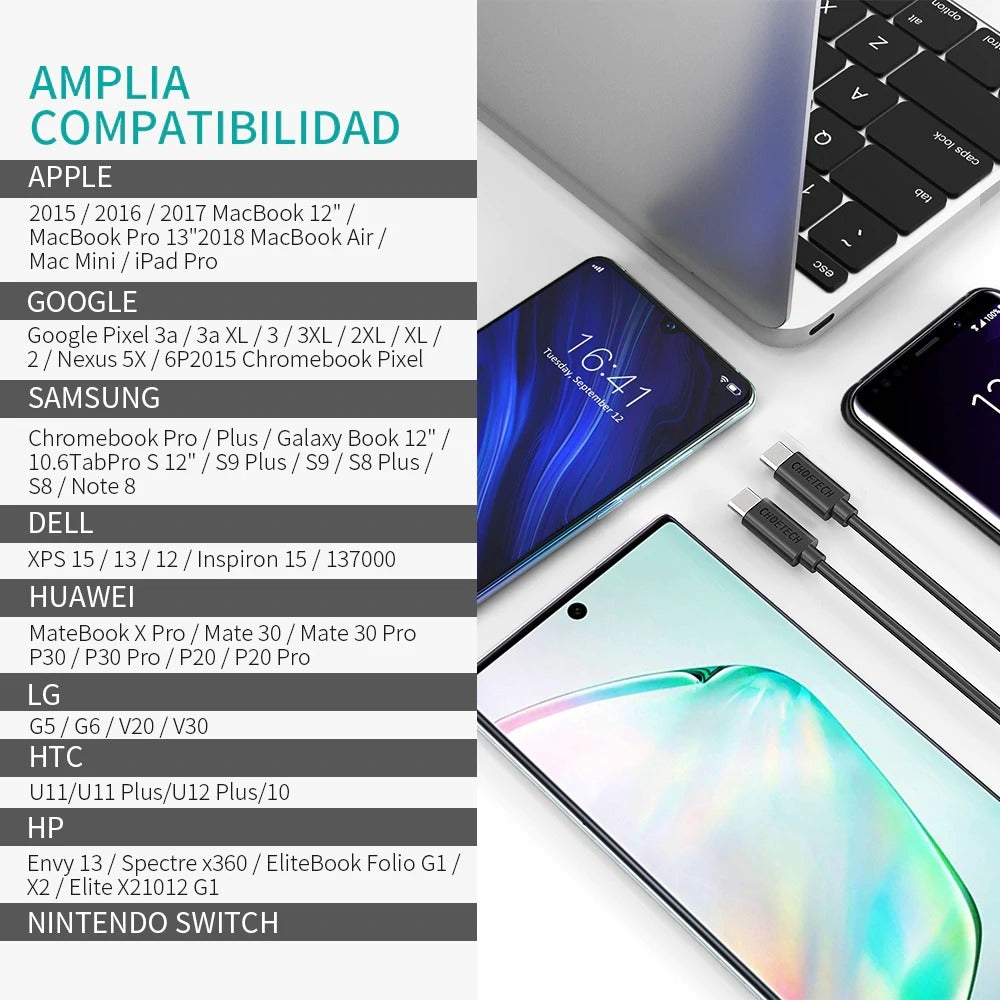 CHOETECH USB-C cable is compatible with Nexus 6P/5X, Nintendo Switch, Galaxy Note 8, S8/ S8+, Nokia 8, LG G5, Apple MacBook (12 inch, 2015), Nokia N1 Tablet, the ChromeBook Pixel (2015), Asus Zen AiO , Nexus 5X , Nexus 6P, Lumia 950, Lumia 950XL , Lenovo ZUK Z1 , HP Pavilion x2, Apple TV 4 and Other Devices with Type C USB for transferring data or charging.