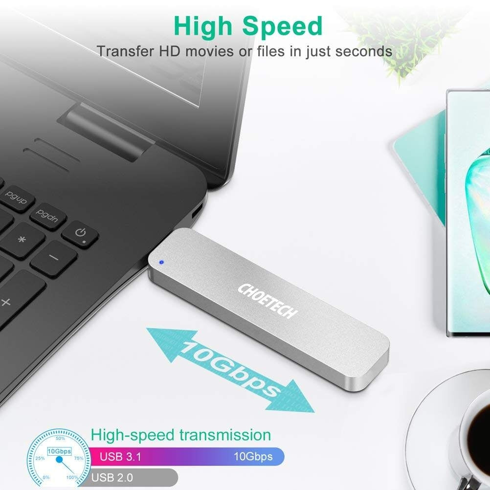This USB 3.0Gen 2 to M.2 SSD Drive Adapter Can convert an M.2 PCIE NVME SSD into a portable external drive. Supports data transfer rate up to 10Gbps, so you can comfortably enjoy 3D games, 4K videos, HIFI music, Ram photos, etc.