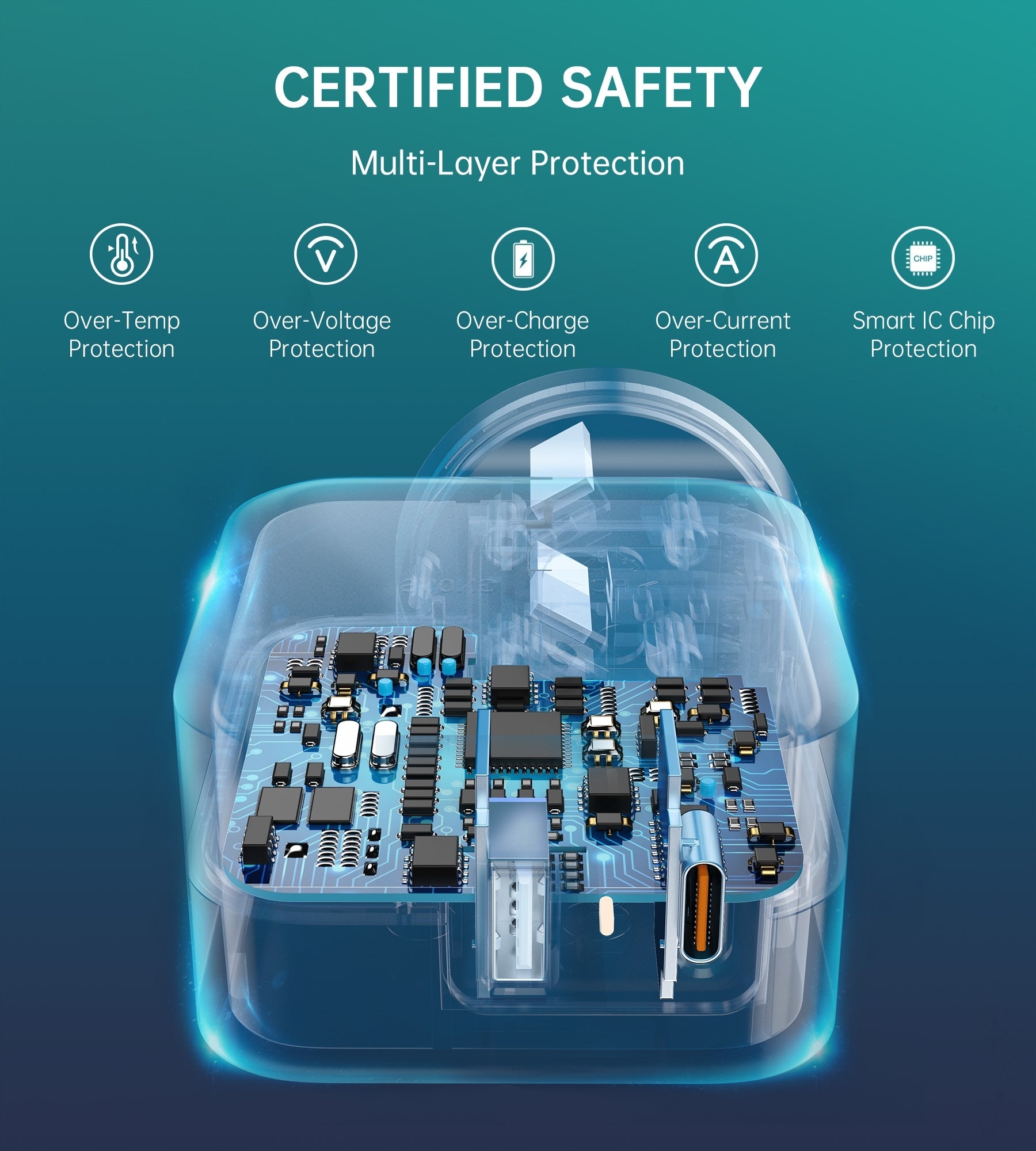 Comprehensive Protection:Built-in safequards keeps your device safe form excessive current, overheating and overcharging.