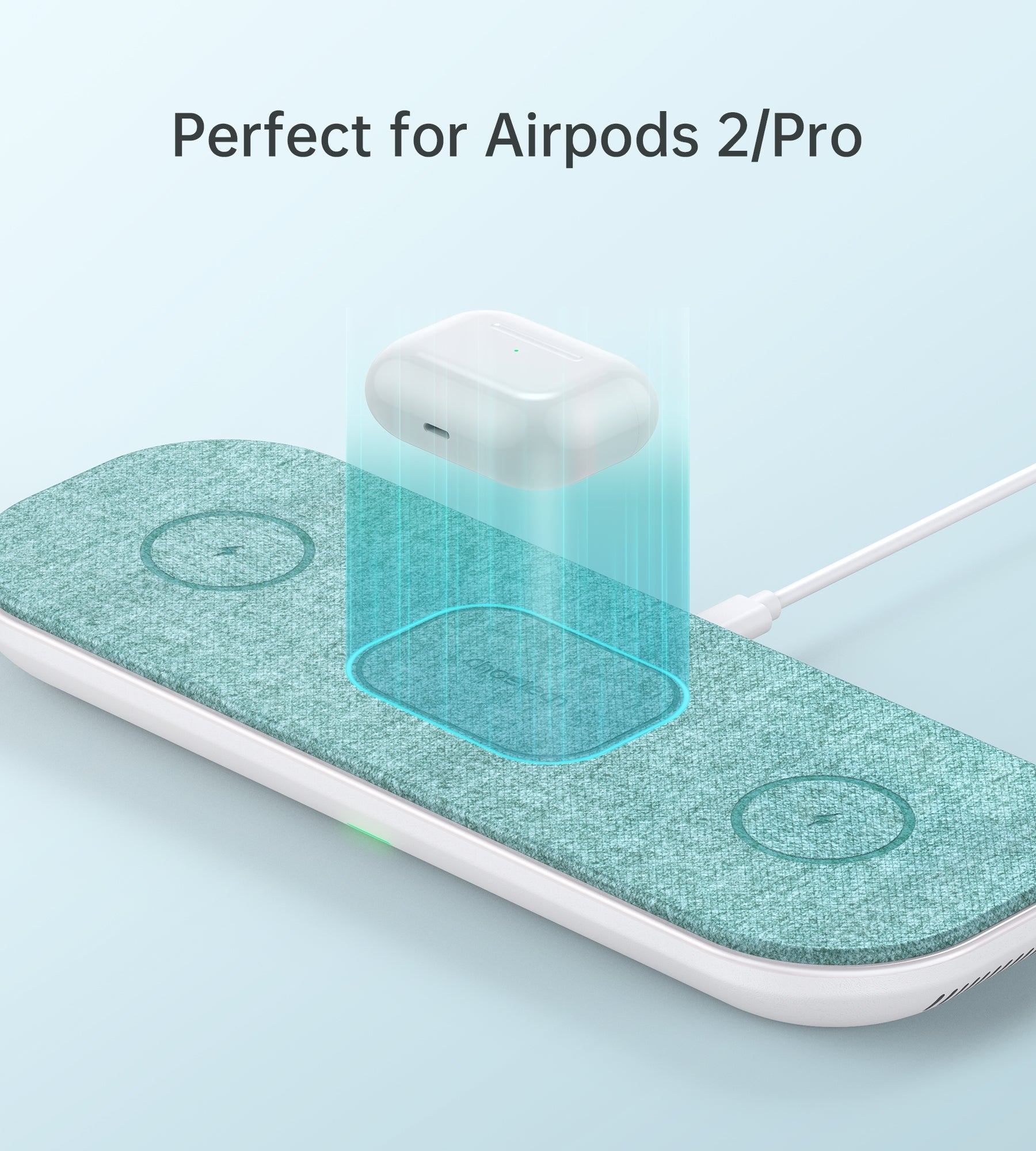 3 in 1 magnetic wireless charging pad for multiple devices, CHOETECH triple wireless charger design with anti-slip fabric surface in green to avoid intermittent charge and also delivers an elegant and classy look, great suitable for friends or family gathering.