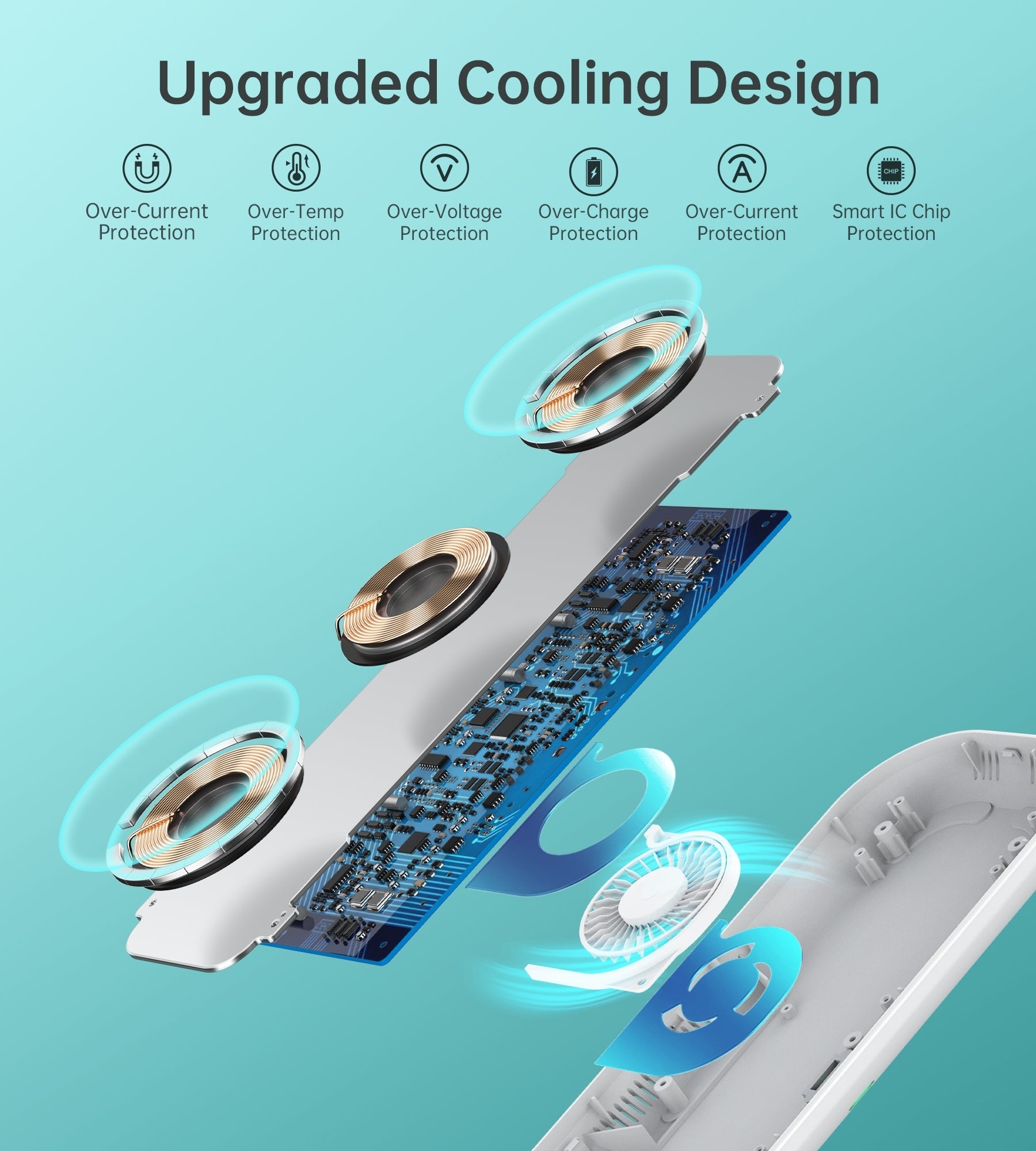Meet qi wireless charging standard and a super silent cooling fan inside this triple wireless charging pad build in protections for overheating, overcharging, short circuit. Compact with 12V/4A DC adapter, 1.5 meter cable for qi faster wireless charging unsure your phone and the wireless charger are kept safe. Note:please do not use the included adapter to charge any other device.