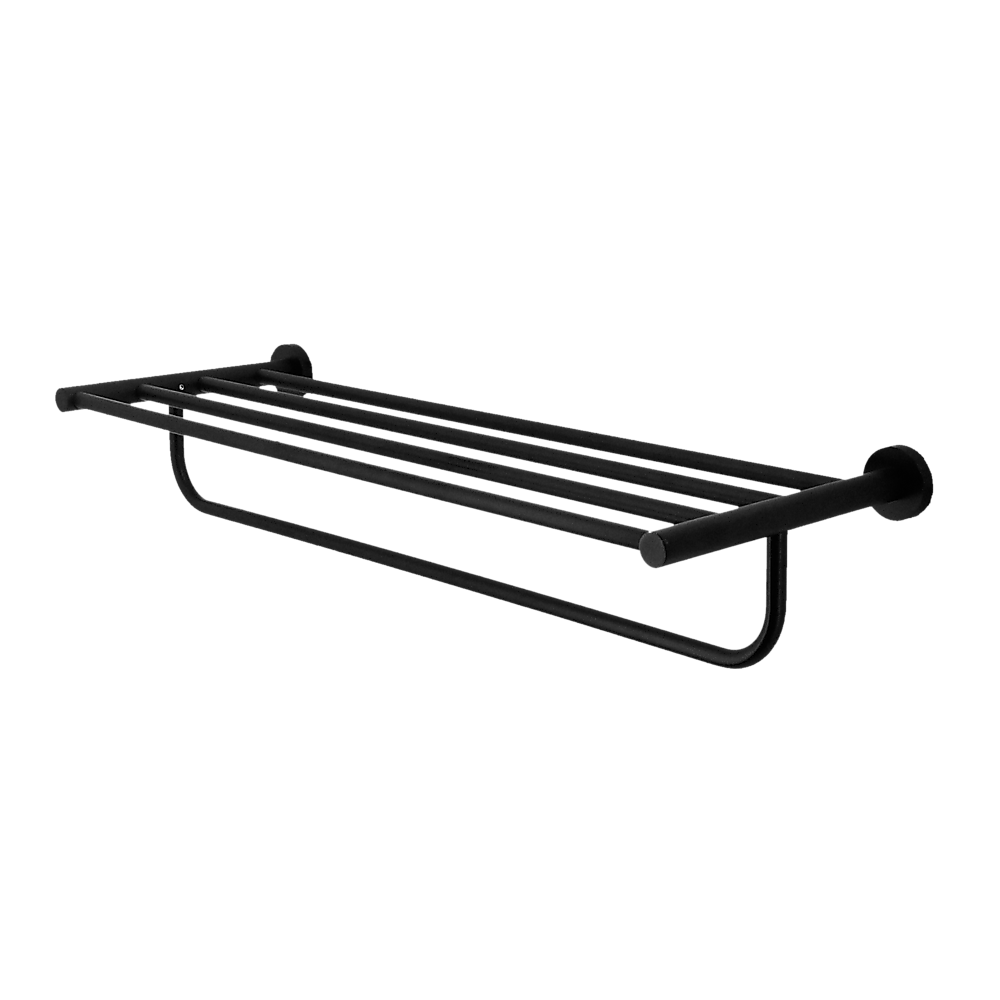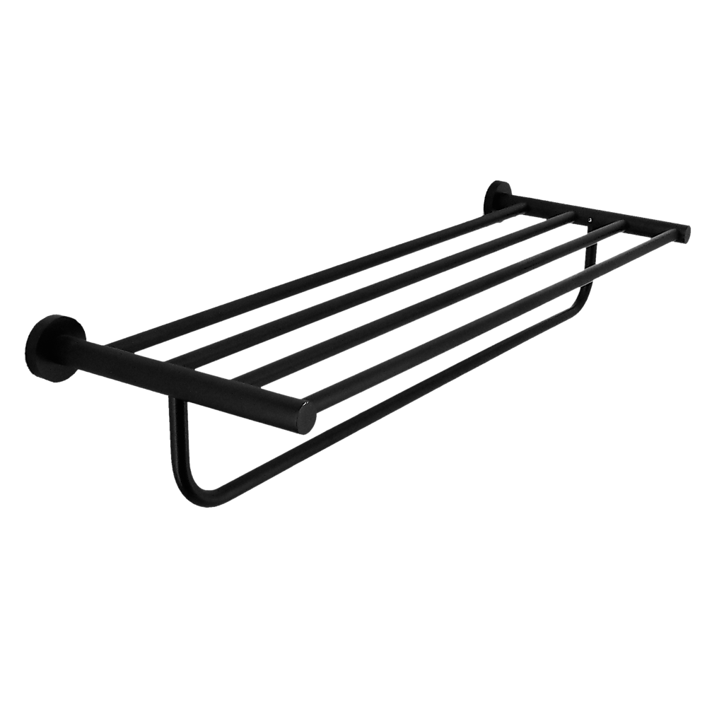 This Bathroom Shelf/Towel rack is a must have for anyone who has ever experienced the frustration of not having enough room to hang your towels, or who just needs a little more storage area. Since Della Francesca produces this product, you know you're purchasing a quality item at a fraction of the retail cost. The electroplated black matte finish adds a touch of elegance as well as providing a protective layer that will keep this towel rack looking sharp for many years.