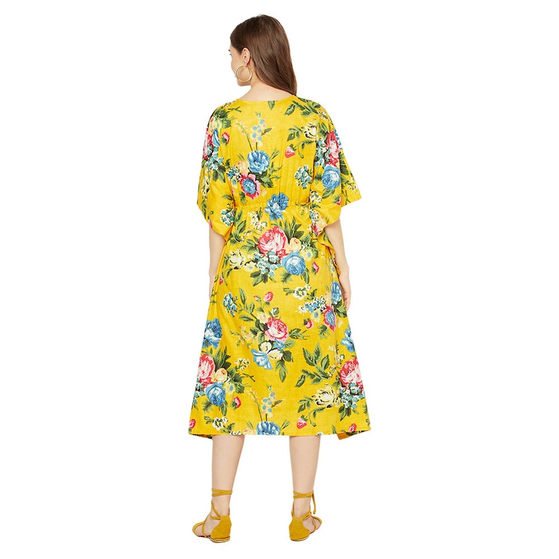 A beautiful Frida Kahlo inspired kaftan for a super price. Perfect as a kimono, robe or a kaftan. Made from super comfy light weight cotton cambric so treat yourself to ultimate comfort whether you are simply winding up at night, getting ready for the morning or just cozying up in your lounge to binge watch a movie on Netflix.