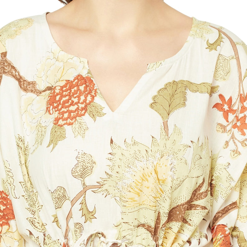 A beautiful Frida Kahlo inspired kaftan for a super price. Perfect as a kimono, robe or a kaftan. Made from super comfy light weight cotton cambric so treat yourself to ultimate comfort whether you are simply winding up at night, getting ready for the morning or just cozying up in your lounge to binge watch a movie on Netflix.