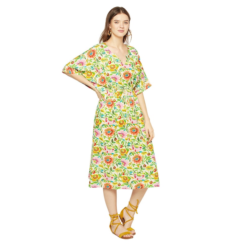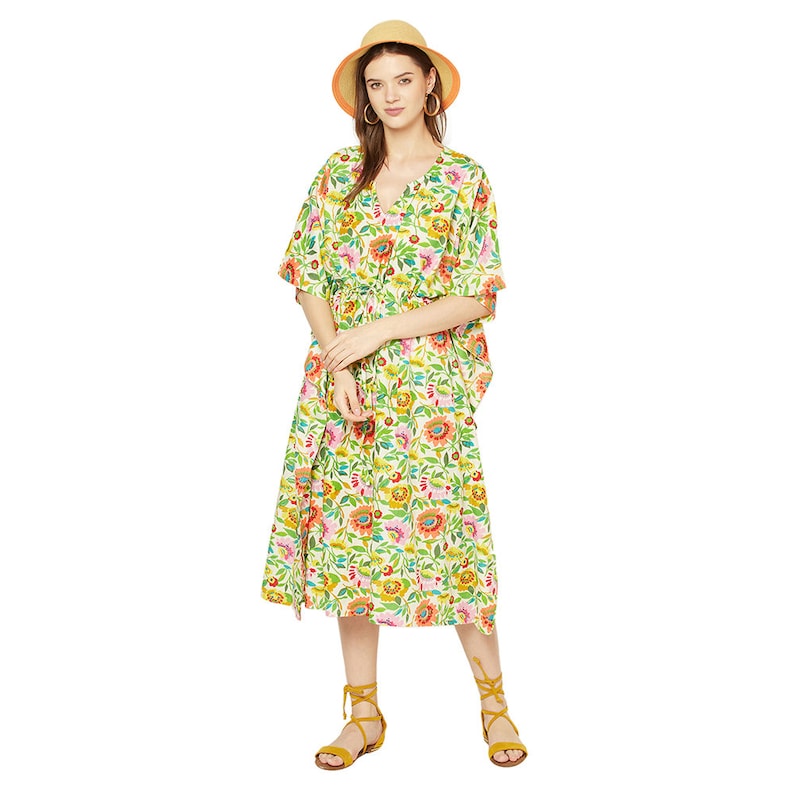A beautiful Frida Kahlo inspired kaftan for a super price. Perfect as a kimono, robe or a kaftan. Made from super comfy light weight cotton cambric so treat yourself to ultimate comfort whether you are simply winding up at night, getting ready for the morning or just cozying up in your lounge to binge watch a movie on Netflix.