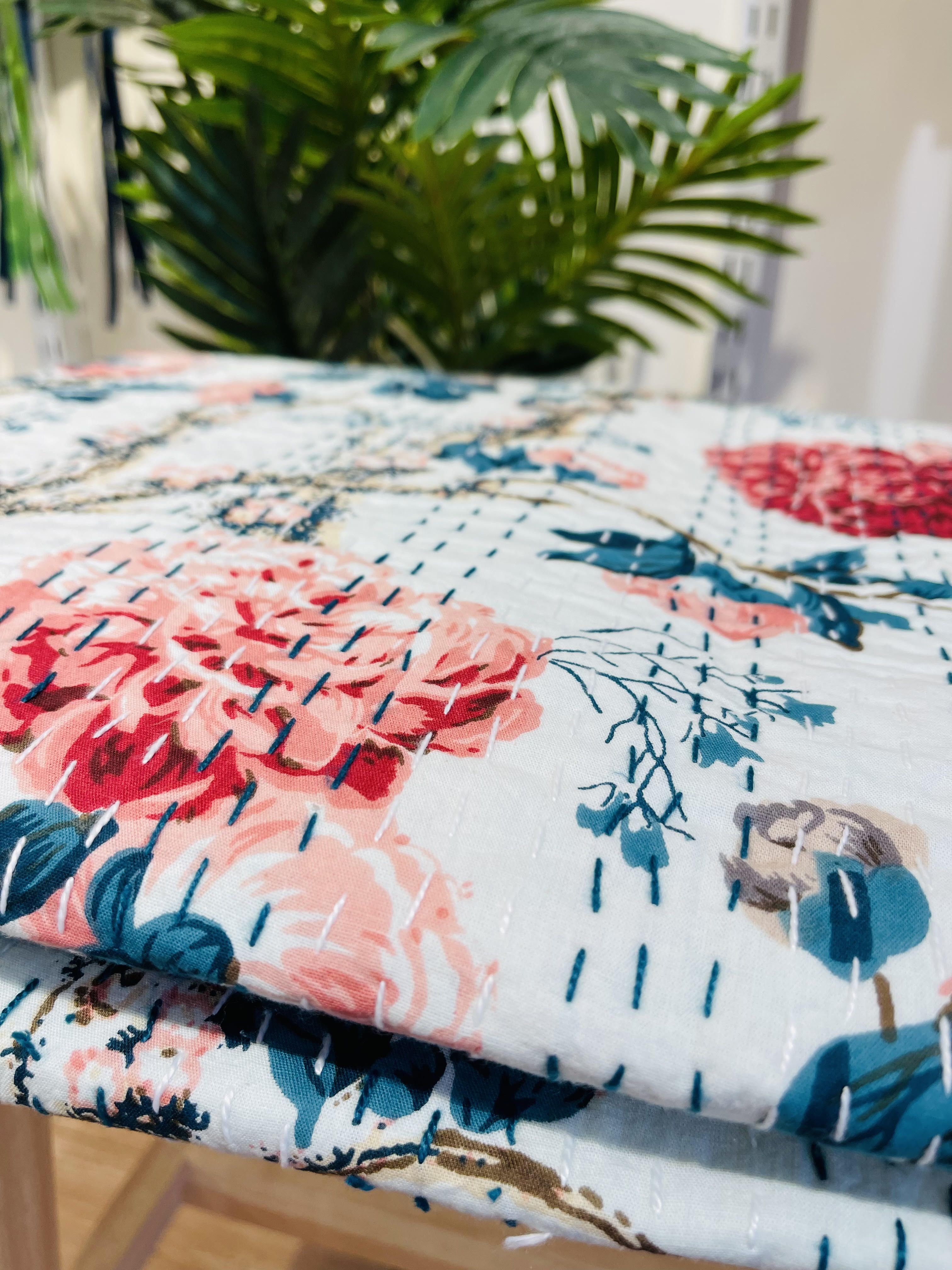 Cotton Kantha Quilt/ Bedspread/ Coverlet/ Throw - Royal Floral Hand stitched Kantha