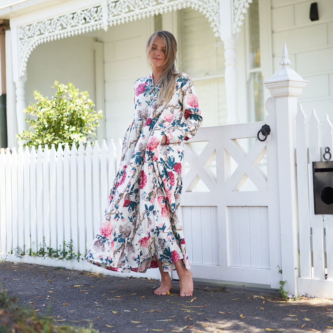 You will fall in love with this gorgeous piece; our boho maxi dress is bright, breezy and light. The elegant floral and framed design makes this dress timeless.