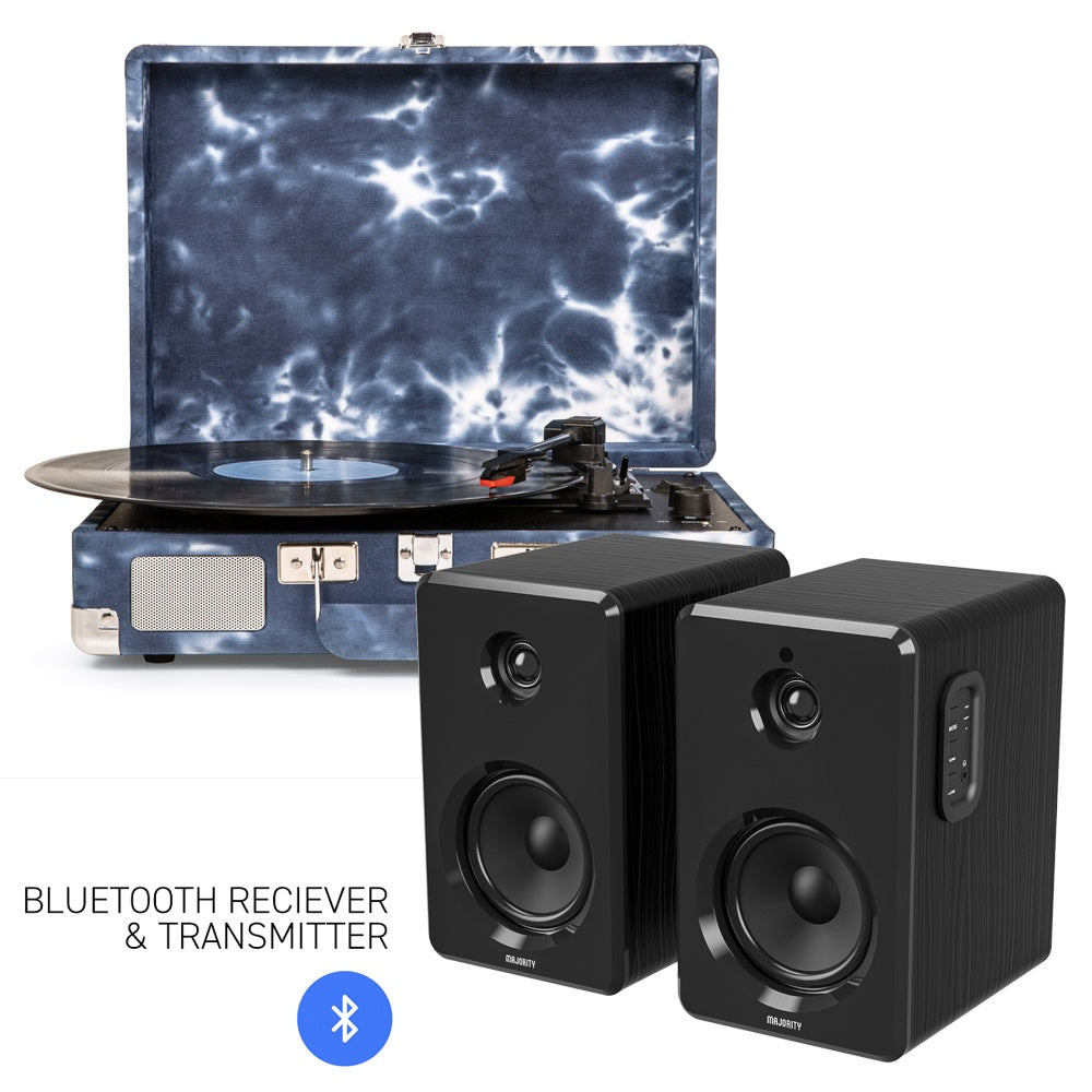CROSLEY Crosley Cruiser Bluetooth Portable Turntable - Indigo + Bundled Majority D40 Bluetooth Speakers - Black