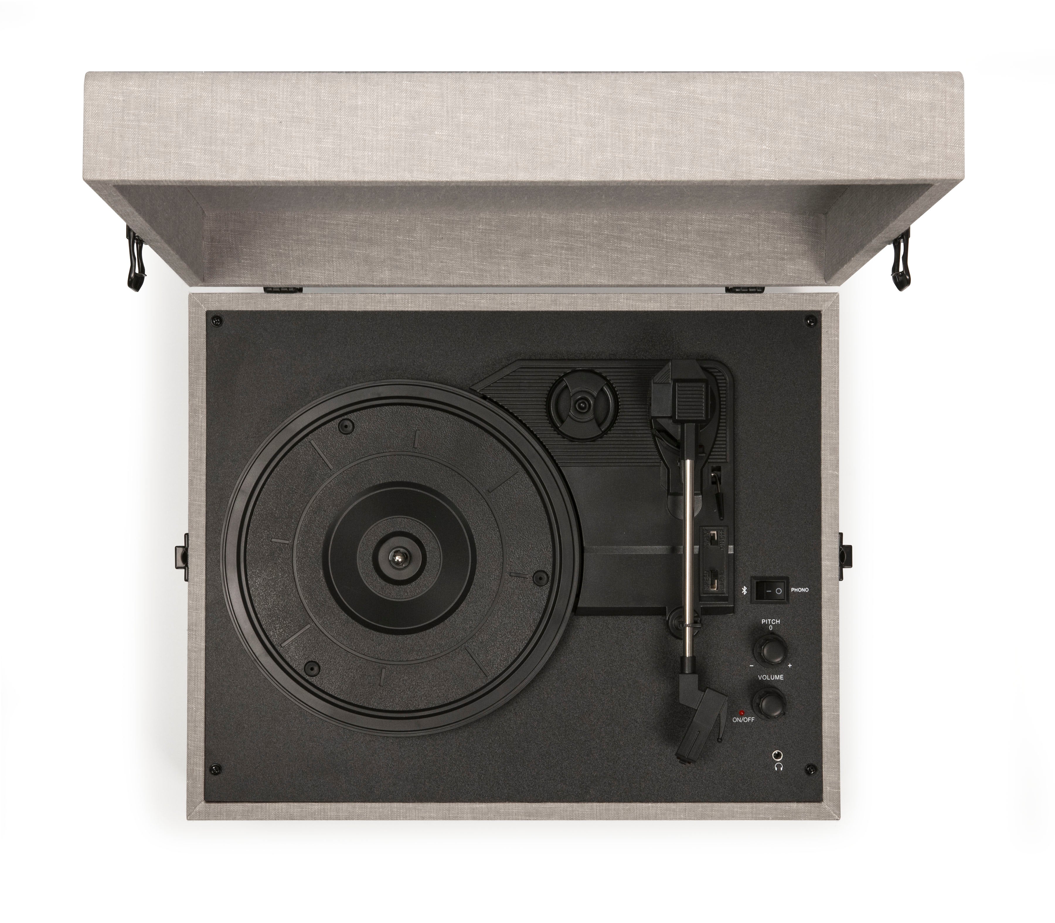 Join Crosley's mission to bring analogue music to the masses with the Voyager three-speed turntable. The clean, vintage-inspired aesthetic fits into any space, while the lightweight design allows this record player to travel “further than anyone, or anything in history.” Spin 33 1/3, 45, or 78 RPM records or launch the built-in Bluetooth transmitter or receiver to send your digital music wirelessly. Discover the RCA outputs on the back that allow you to easily plug into your existing solar music system or bigger speakers to add propulsion to any party. Drop the needle on a reissue of the golden record, probe the adjustable pitch control knob to dial in the speed and prepare for blast off!
