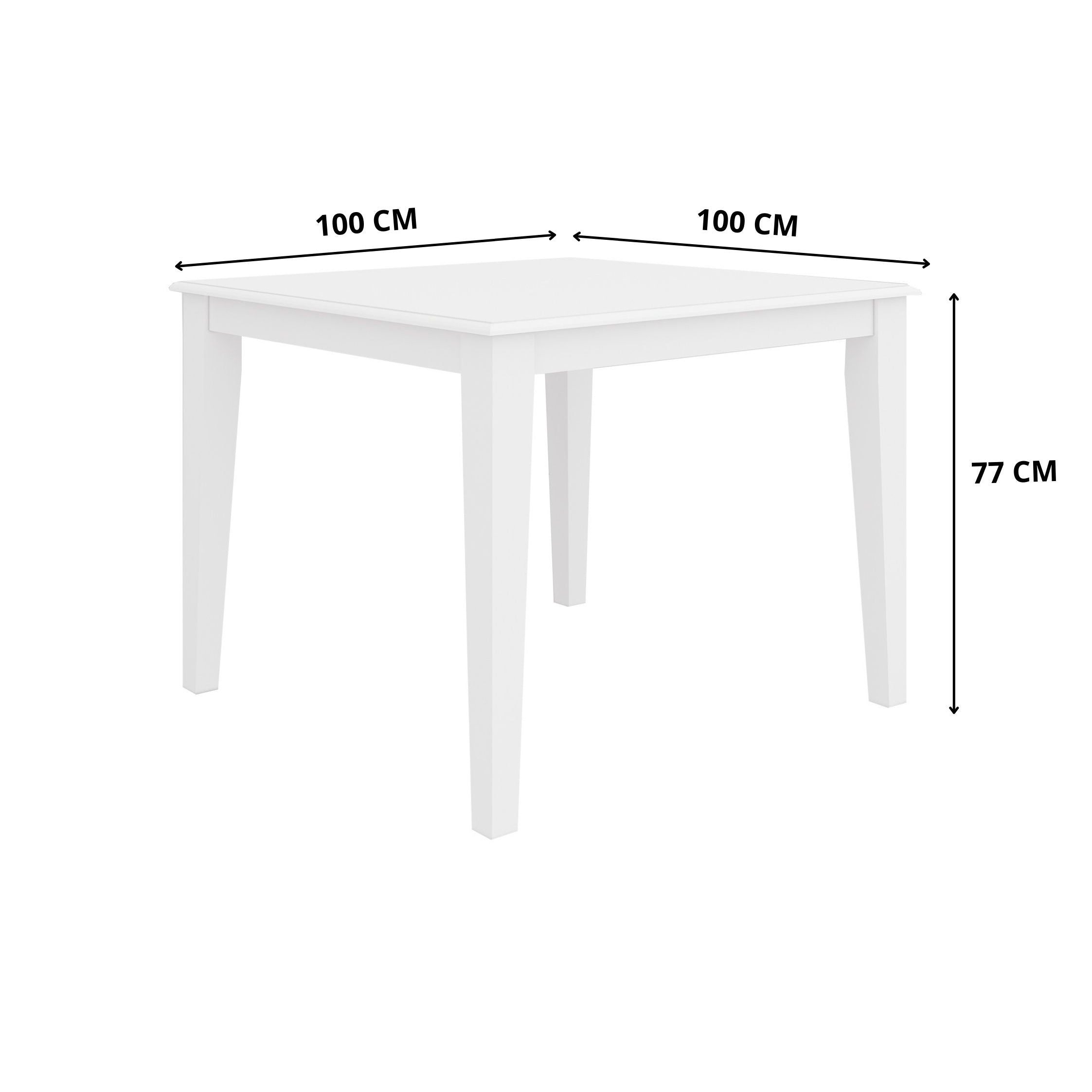 Dining is more about spending quality time with family and friends than it is about just having your meal. You can enjoy this wonderful time in your dining space with a touch of refinement and extreme comfort thanks to this gorgeous 4-seater dining table designed in the Hampton style.The beautiful white, square dining table is made of high-quality Solid Acacia Wood and MDF, obtained in a sustainable manner. The wood makes the table surface silky smooth, super strong, and also resistant to moisture and extreme temperature. A one-year warranty is included with the simple-to-assemble dining table.