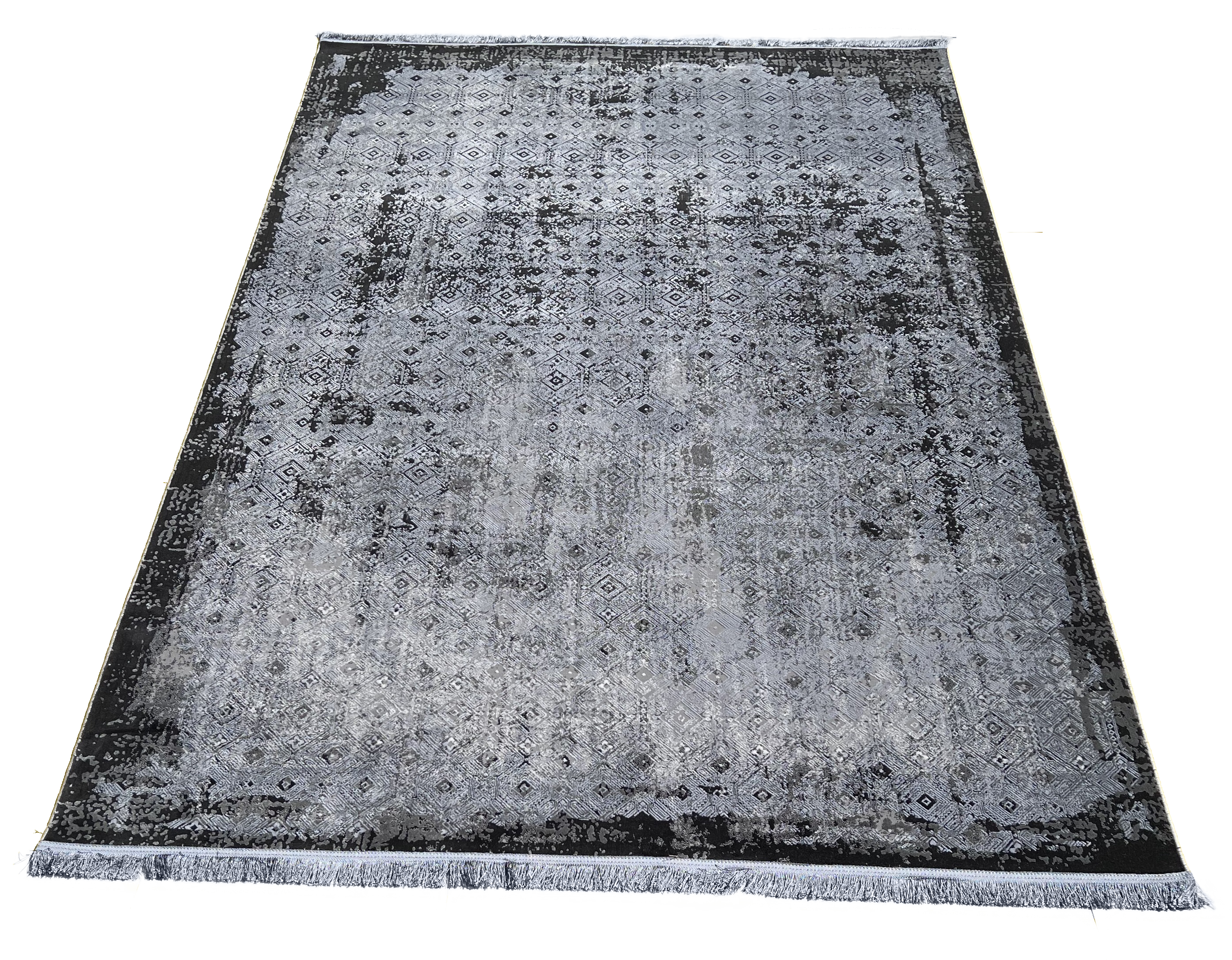 An elegant, simplistic grayscale design featuring a modernistic diamond pattern embellishing abstract shade strokes. This rug is an ideal complement to a contemporary home space. Despite being machine-made, Danica retains an authentic hand-made look.