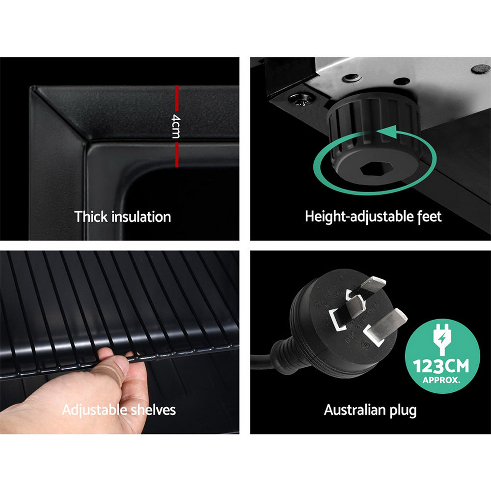 The portable Devanti Bar Fridge is great for keeping a variety of food and beverages chilled and cooled and without taking up too much space. Designed with five temperature settings, the energy-efficient bar fridge lets you set your desired coolness and freshness. Other great features include adjustable shelves, double-glazed door, height-adjustable feet, built-in handle, reversible door and consistent refrigeration to name a few. The compact bar fridge is also totally eco-friendly with its R600a freon-free refrigerant and well-made for robust use, such as the PVC door seal gasket, extra thick insulation and a built-in LED lamp to ensure operation is smooth, quiet and hassle-free. Whether you use it as a secondary fridge or a mainstay, the Devanti bar fridge is a cool investment time and again.