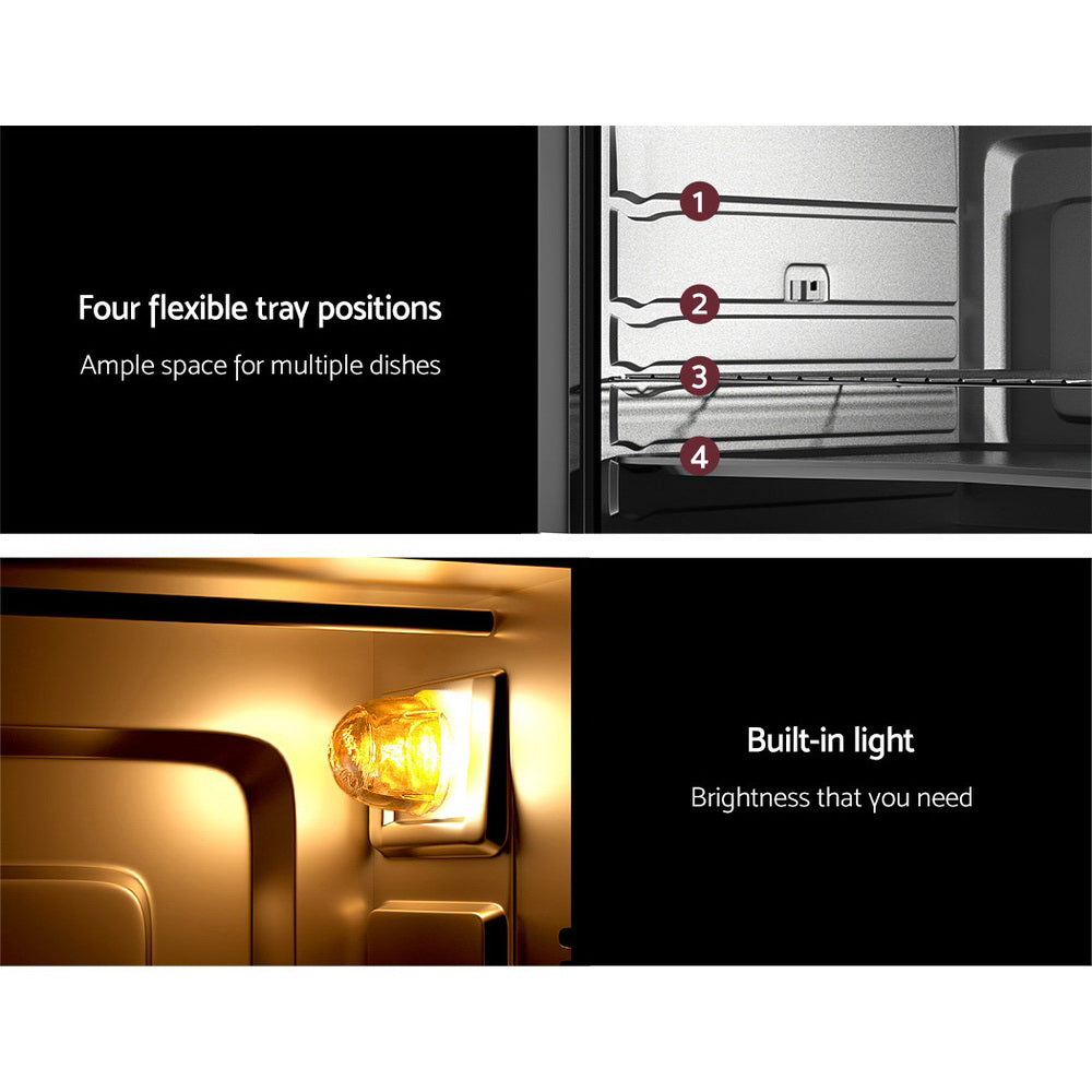 Need a multi-functional oven that you can take anywhere? Or do you need a solution for a home without an existing oven? Look no further than the Devanti Convection Oven. Portable and easy to use, the 45L capacity oven can bake, grill and roast to create your favourite recipes with minimum hassle. The oven is well insulated and has a cool-touch handle to always keep heat and radiation at bay for comfortable cooking. It features a rotisserie option for even cooking, 4 flexible tray positions and your choice of heating element options for precise cooking control every time. With its tempered glass door and built-in light, you can always monitor the progress of your cooking and adjust the temperature as needed. It also has a 60-minute timer with an alarm to help you time your cooking to perfection. Not least, the oven also comes with a host of bonus accessories that include a baking tray, wire rack, tray handle, rotisserie fork and rack, so you’ll have everything you need to start cooking pronto!